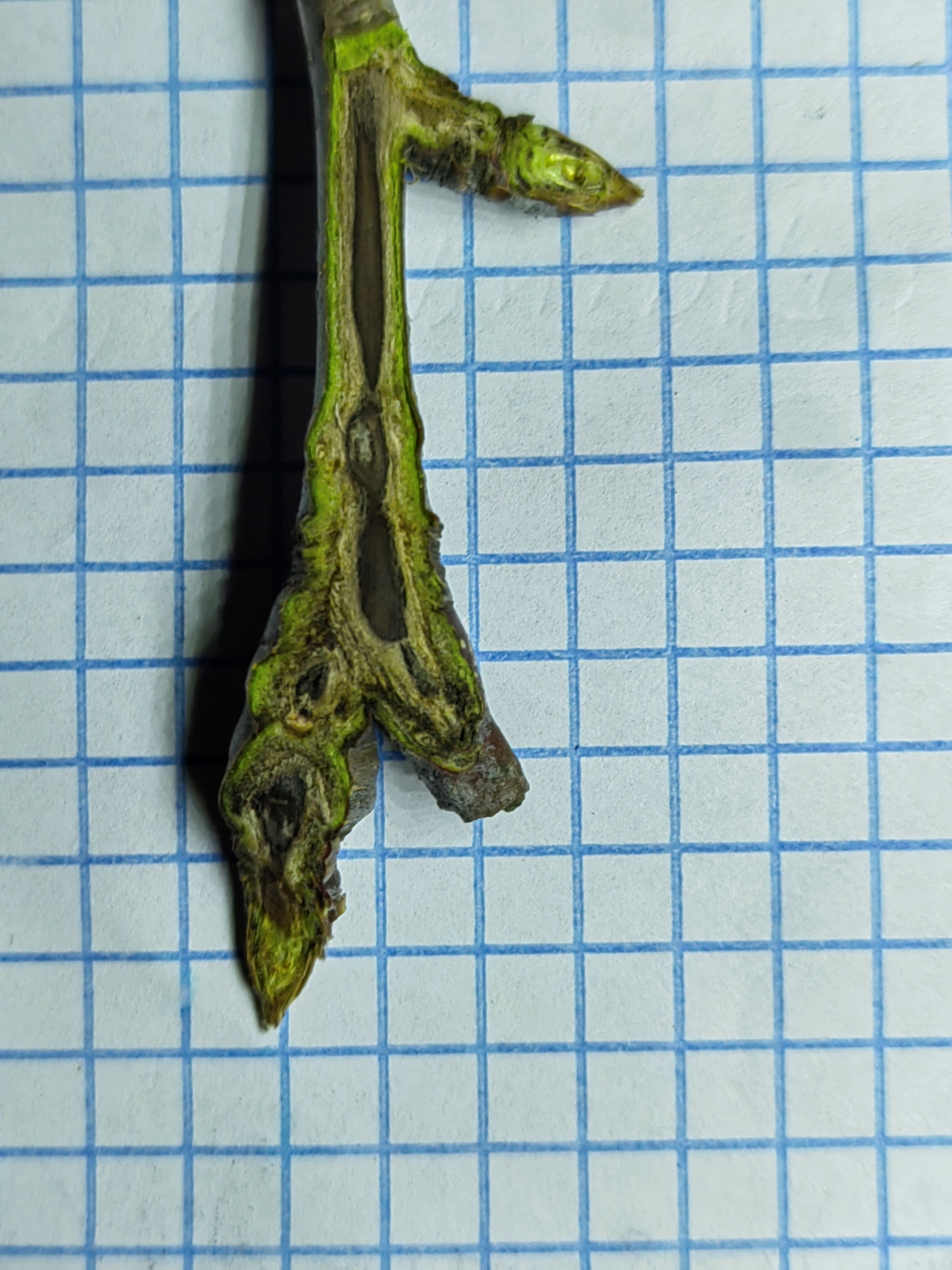 Лет двадцать назад, когда я был глупым, я тоже делал срезы на однолетнем приросте и смотрел потемнение древесины. После убедился, повреждения на груше весной до 2 баллов в середине лета пропадают. Срез древесины зеленый. Иногда даже более 2 баллов, лишь бы камбий сохранился. Потом перестал глупостями заниматься. Иногда дерево поврежденное на 3 балла весной , хорошо востанавливается к осени. Поврежденное на 2 балла востанавливается к осени плохо.