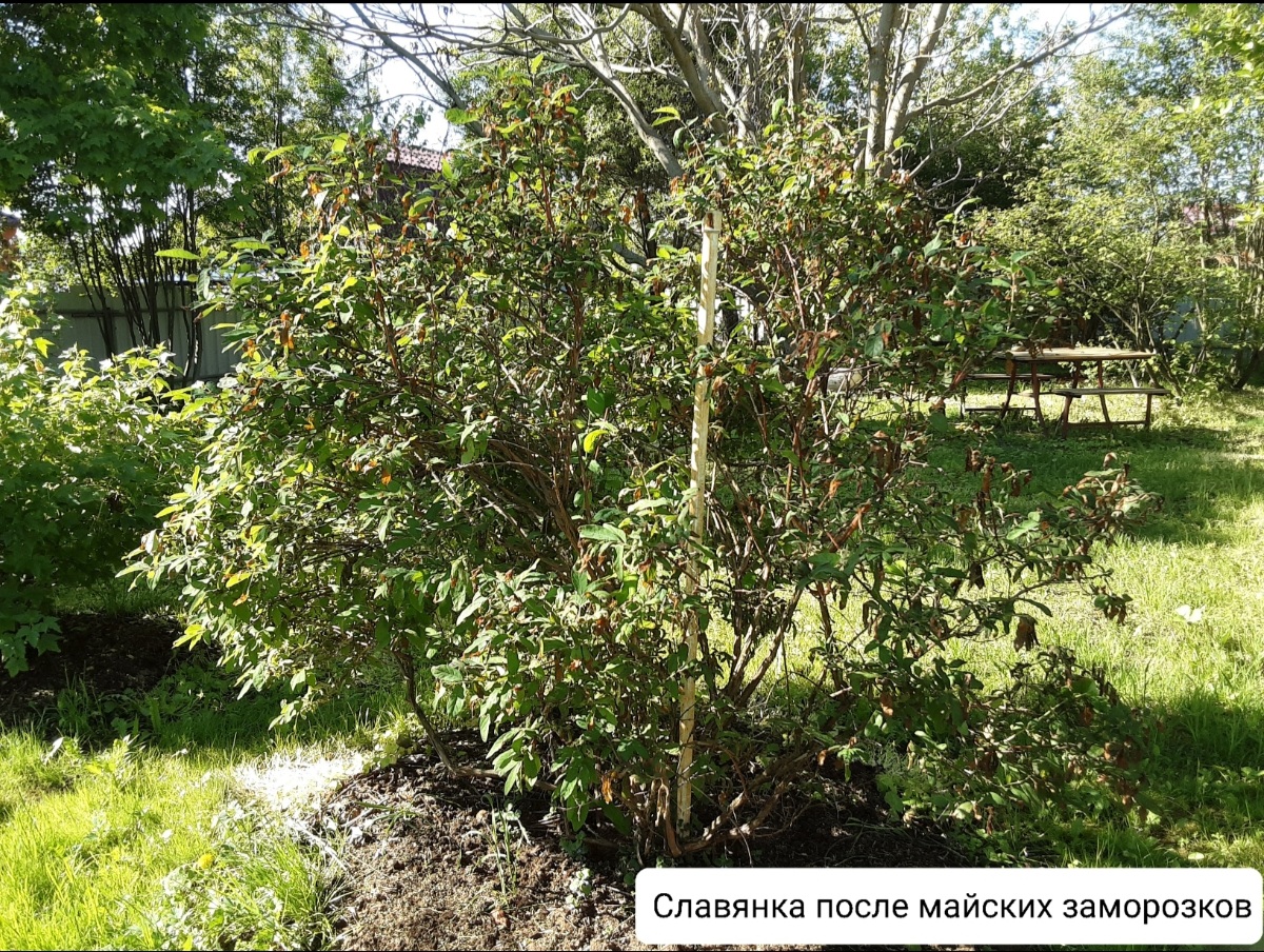 Одну ночь -6-7 выдержала и канадская и российская жимолость. Но не было ветра в ту ночь. А вот в ночь где дул ветер до 15 м/с с морозом -4-5 обморозило все. Все растения в саду с повреждениями разной степени. Где-то чуть чуть листья почернели, а где-то пол дерева или куста, а где-то полностью все поникло, и больше не поднялось. Листья стали красного, жёлтого оттенка. Ни я , ни мои родители, коим за 80 лет ,такого не помнят