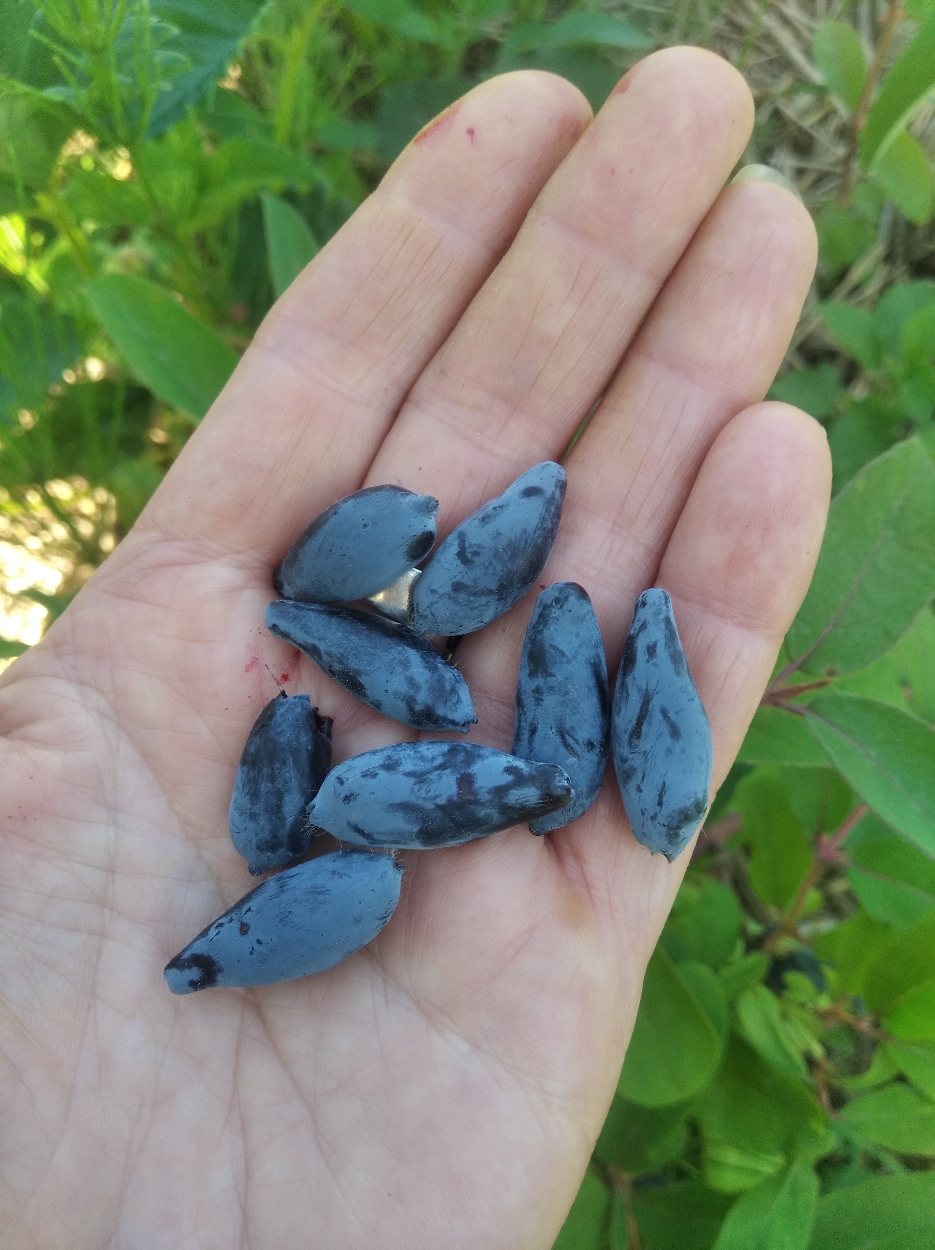 Для расширения ассортимента ягод. Эта ягода - самая первая . В заморозке перетертая с сахаром очень вкусная. Можно пить морс, есть с творогом, блинчиками, с чаем. Мелкие семена совсем не мешают , почти не чувствуются, в отличии, например, от семян смородины или крыжовника. Думаю, будет отлично добавить целыми ягодами в крем для торта зимой. Только надо не забыть заморозить целые ягодки жимолости.