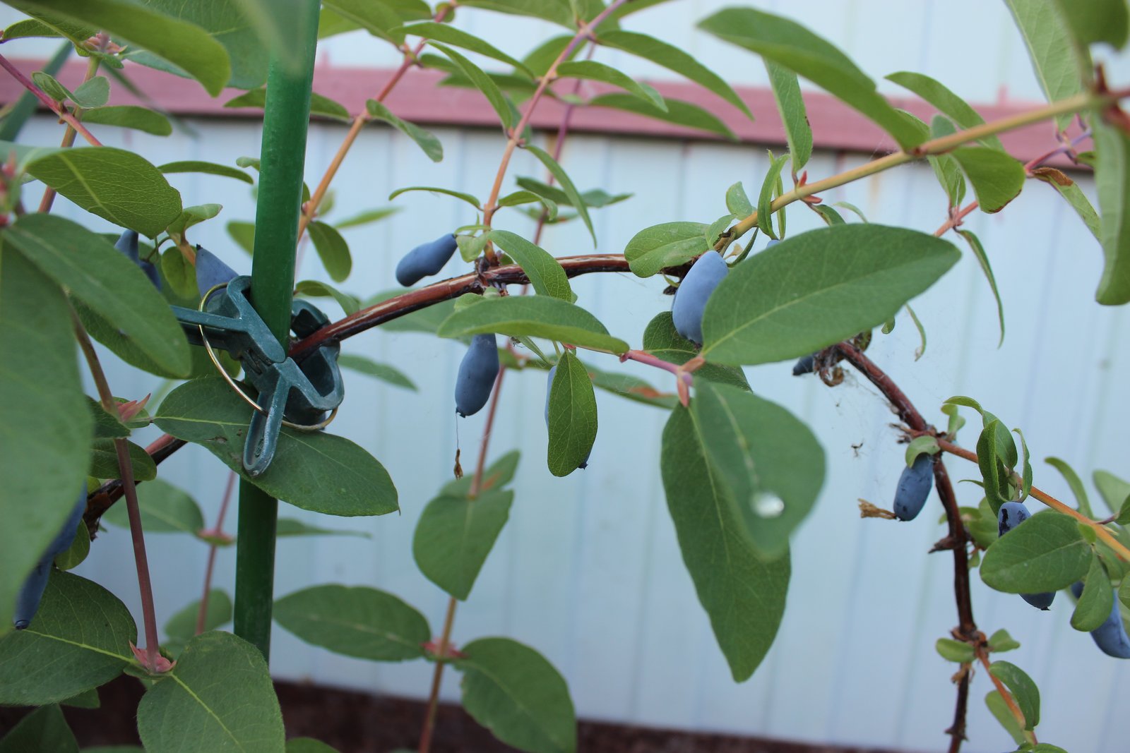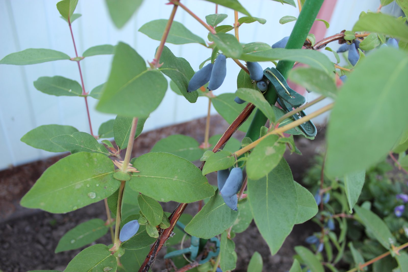 Не был в деревне две недели. Ранние сорта жимолости отцвели. Аквамарин оказался из их числа.