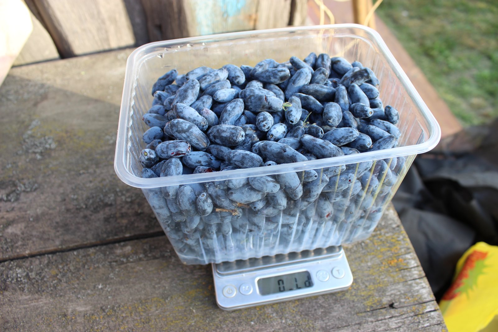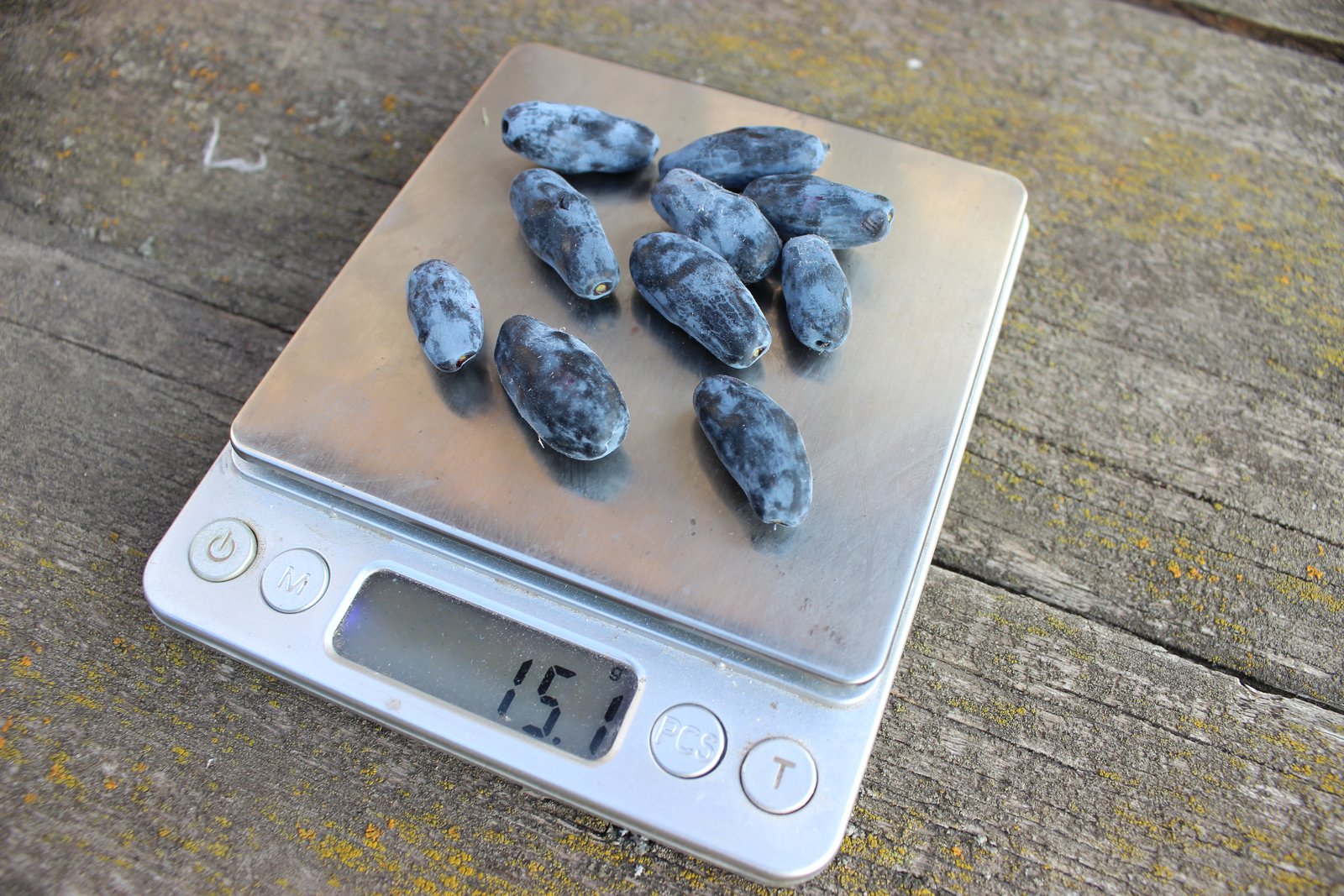 Весы где-то до 1,1 кг. На фото перевес, думаю порядка 1,2 - 1,3 кг. получилось. Внешне как-будто бы ягоды и не убыло. Размер ягоды типичный для Уссульги.