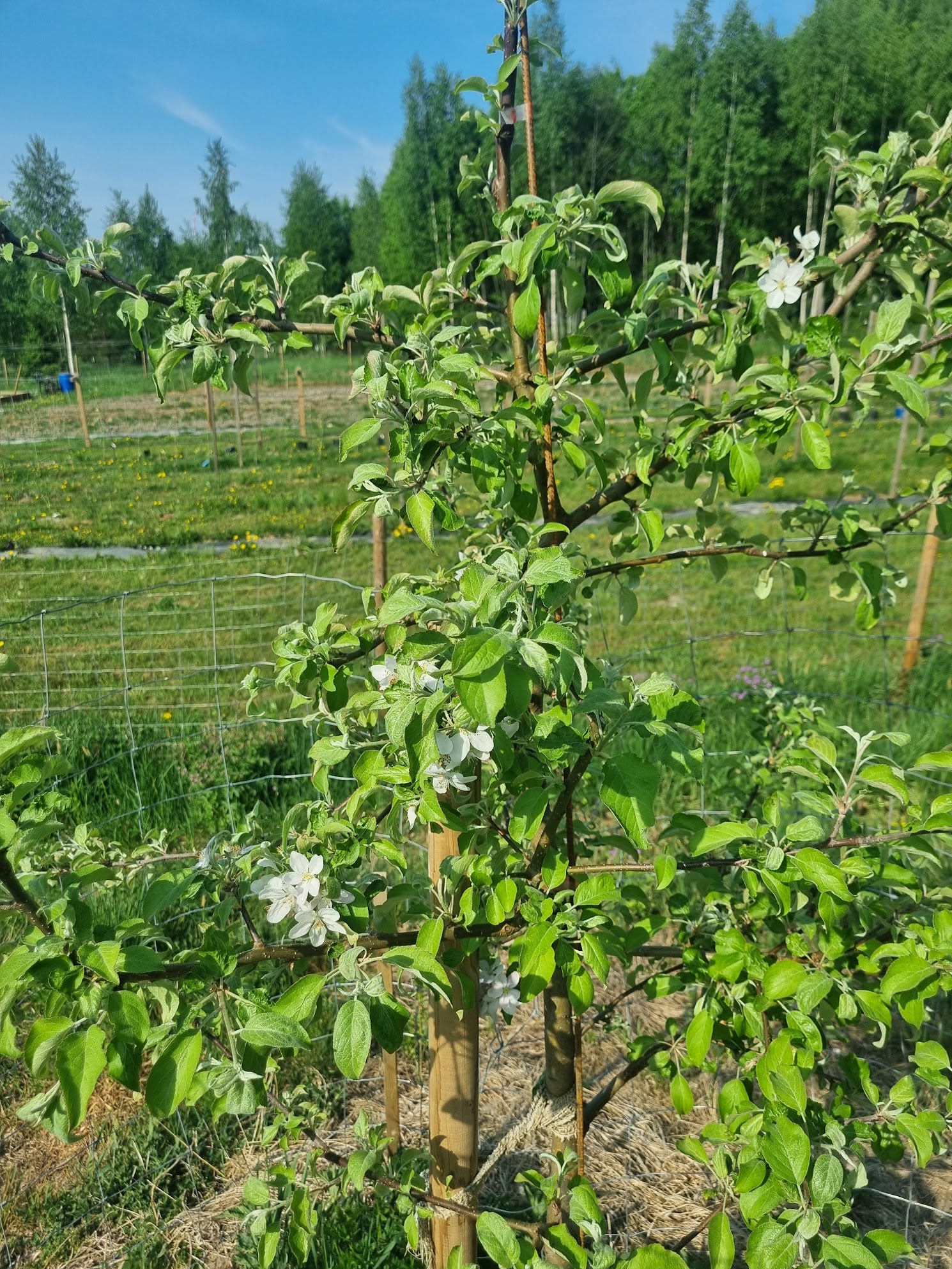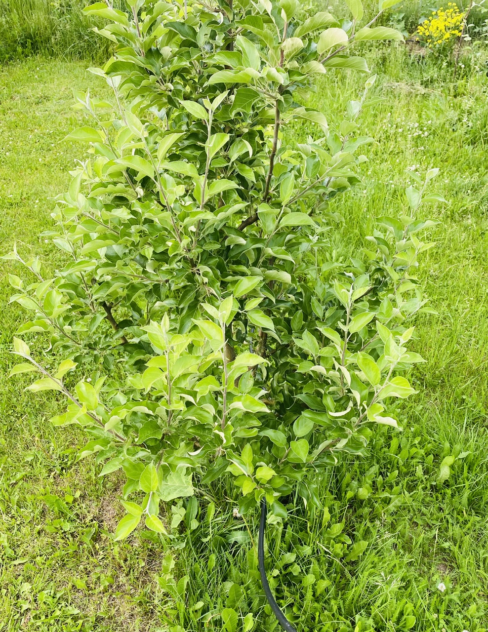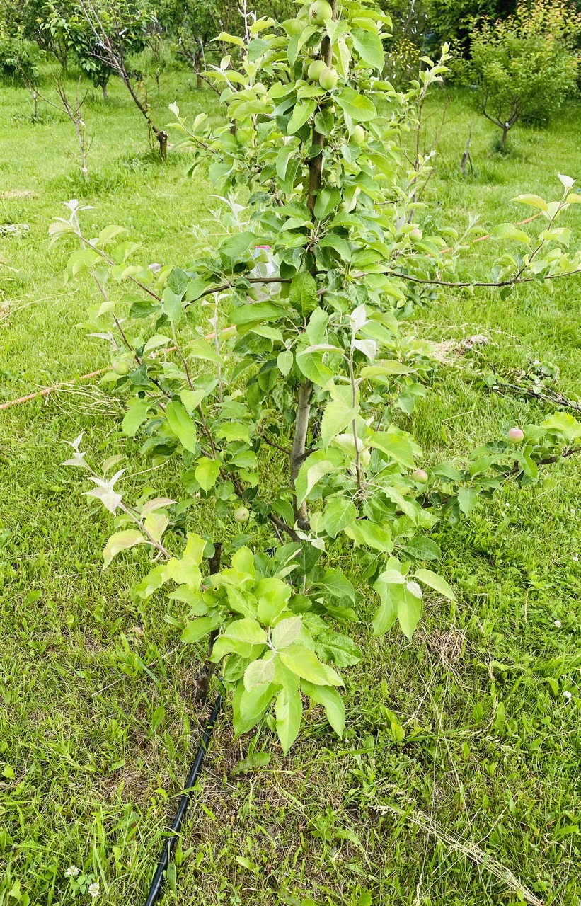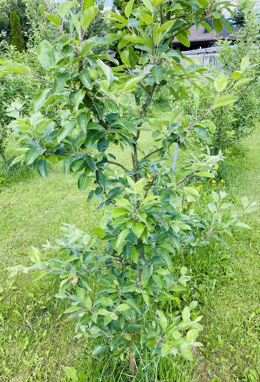 Сад посажен по схеме 3х1,5 и 3х2 м, поэтому на молодых деревьях нет веток длиннее 60 и 90 см соответственно.