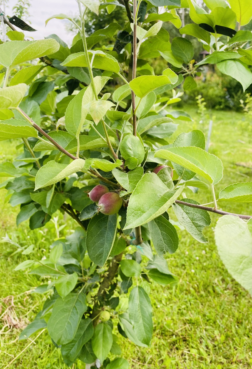 В этом году майские морозы были чуть ниже по t, соответственно меньше цветов были повреждены. Все равно отнормировал до десятка плодов, приоритет- вырастить дерево. Помимо саженцев, что привил ЗП на 62-396, заокулирую в августе на G.935 и G.969 для своего сада.