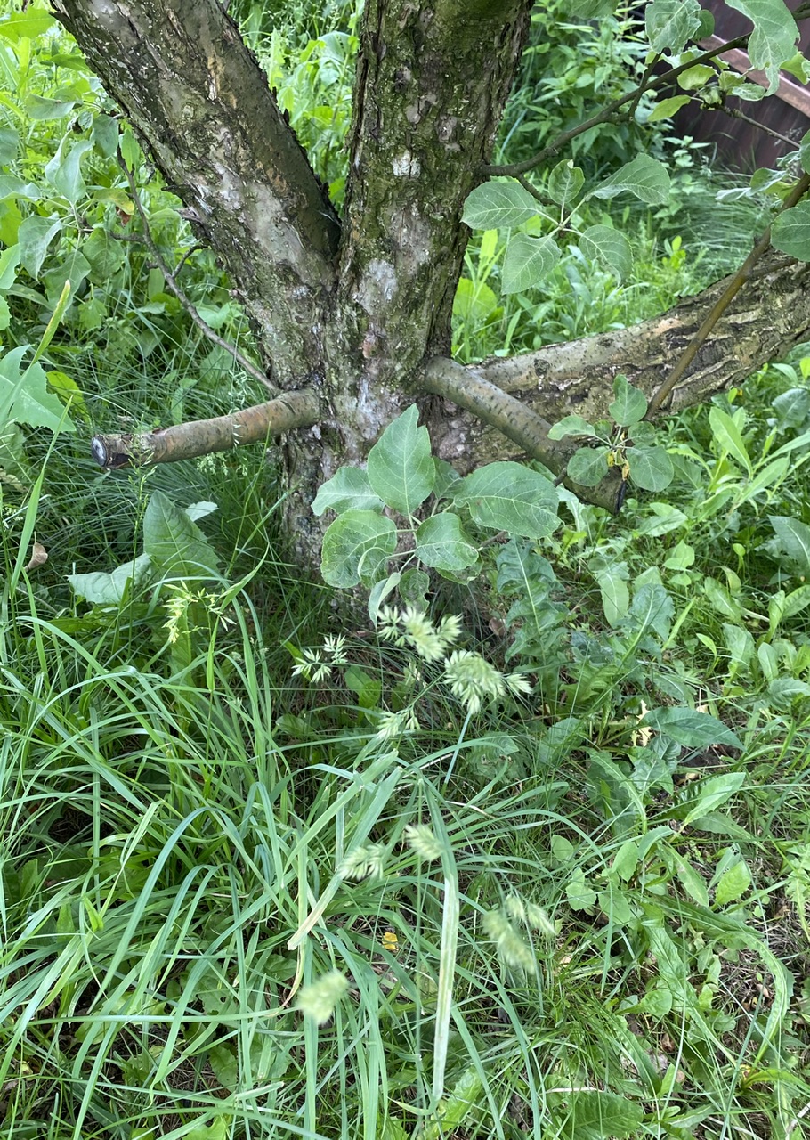 В прошлом году была в саду одной милой пожилой женщины недалеко от моего СНТ, у неё растёт яблоня Лобо в виде куста и занимает много места. Я вначале не поняла что это одно дерево, т.к. выглядело со стороны как будто посажено несколько деревьев. Она объяснила, что так формировала для сохранения сорта в суровые зимы.