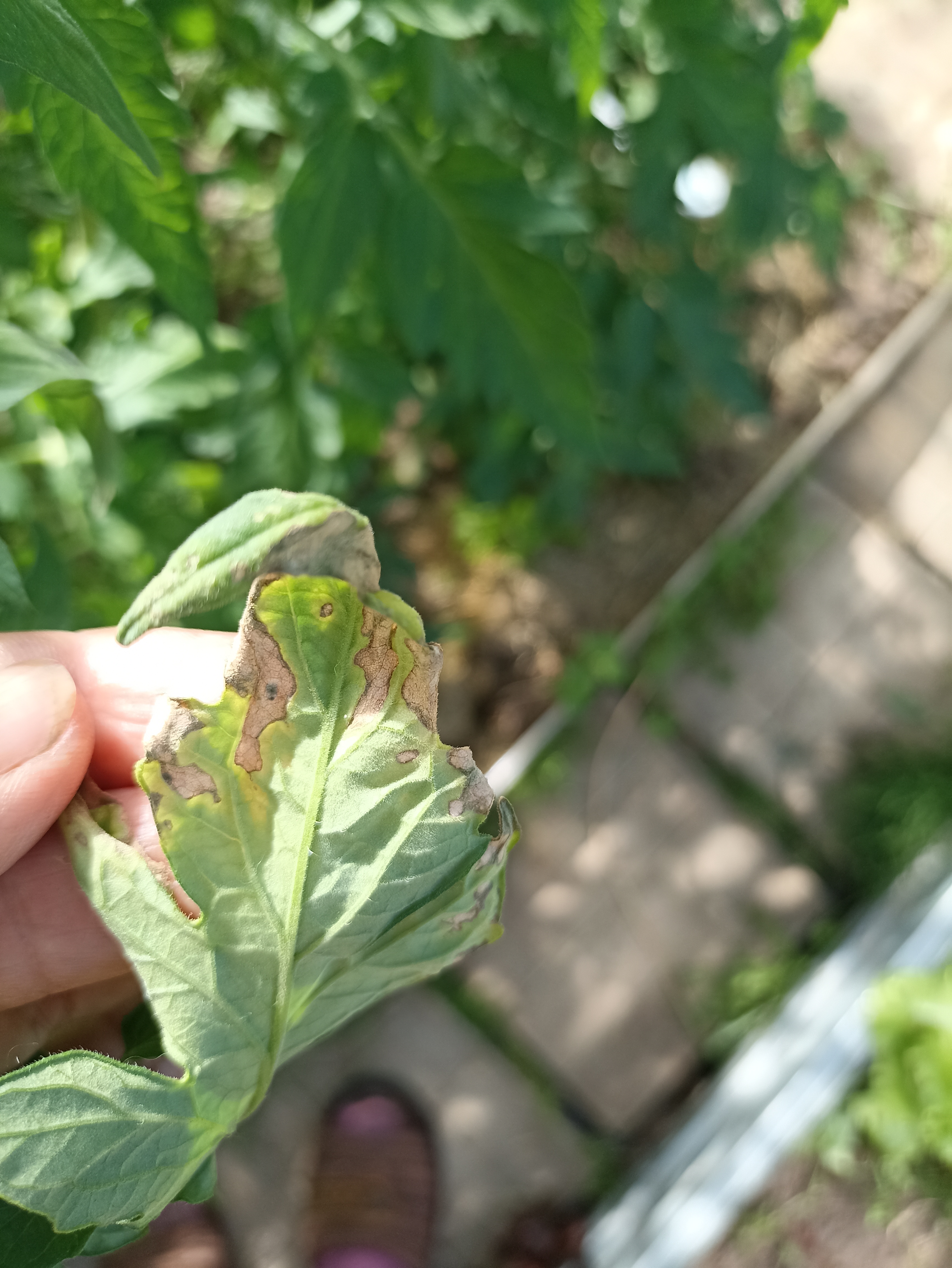 недавно прыскала настойкой алирина с сахаром и удобрением в предверии болезней (выращивала сенную палочку против ЛМР) , тк начались качели, то жара и сухость, то ливни по типу Москвы. Прошлым летом тоже в июне был разгул кладоспориоза. Хотела соломки подстелить. Плоды ещё на индетах не скоро созреют. Листья оборву, вопрос что из химии бы применить действенное.sivka-burka писал(а): ↑19.06.2024, 10:09 Что это может быть с томатами? Такие листья вчера у Пинк парадайзов и ещё какого- то, забыла. Суббота была очень жаркой до 28, теплица накинута строительной сеткой 55 %, но часть с пинками не прикрыта, тут форточка открывающаяся. Может ожег? Или какие-то болезни?