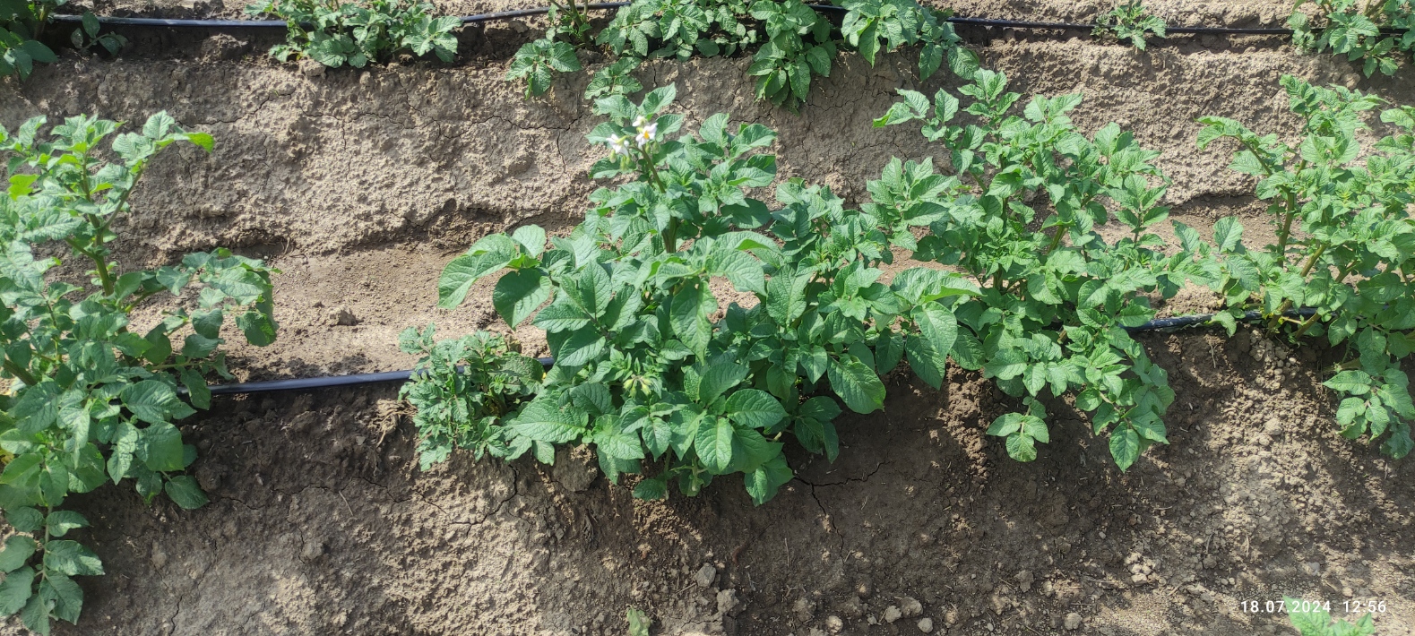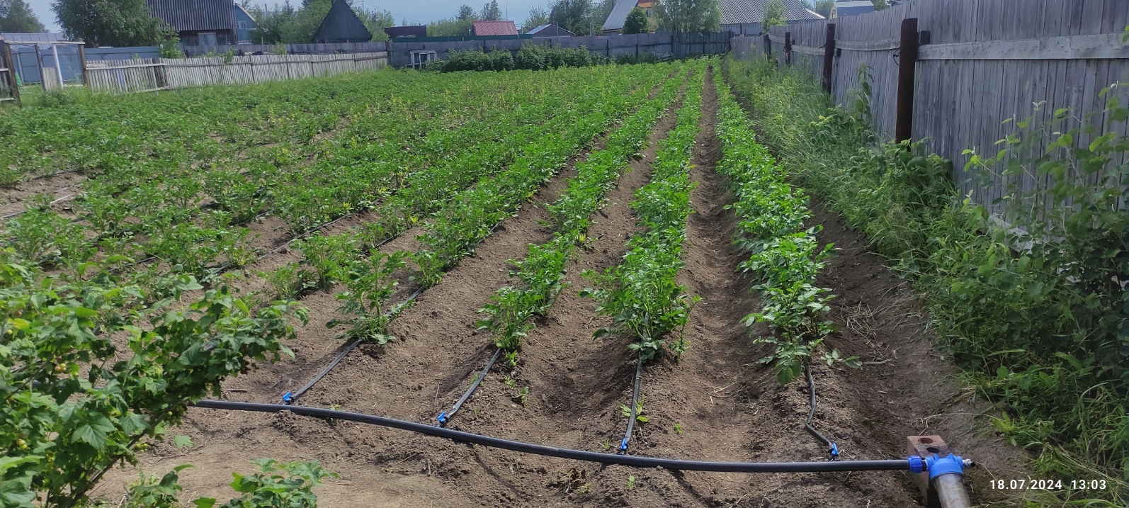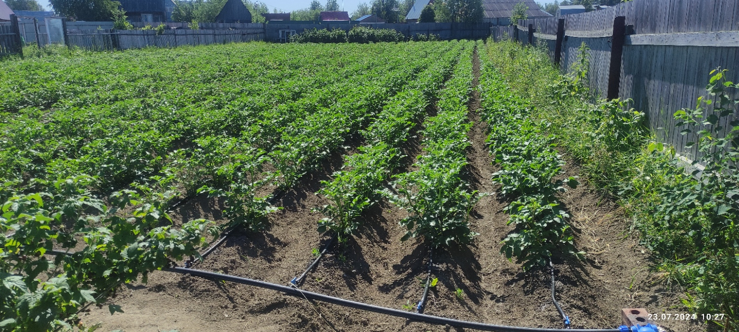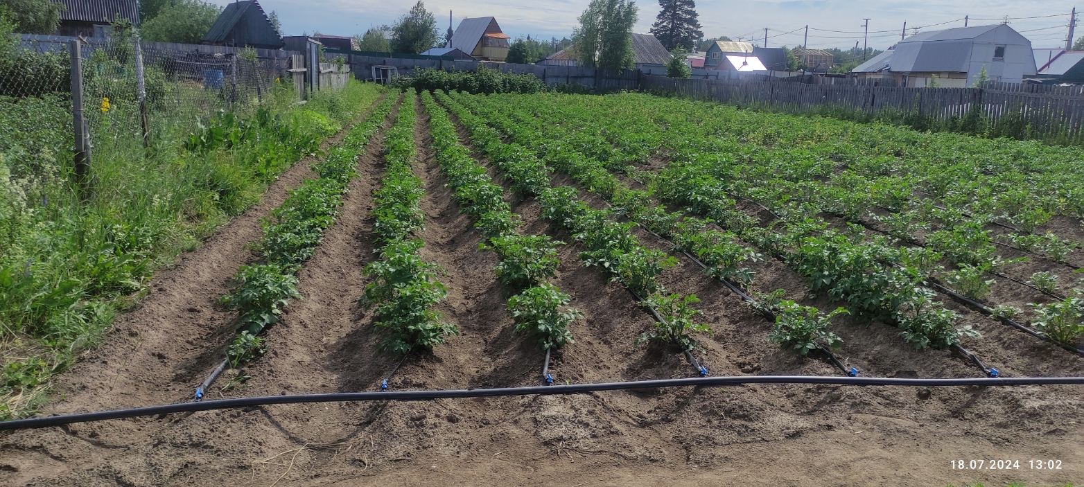 Несмотря на позднюю посадку, надеюсь, что картофель по урожайности наберет товарную массу, тем более прокинут капельный полив - будет регулярно и обильно увлажняться.
