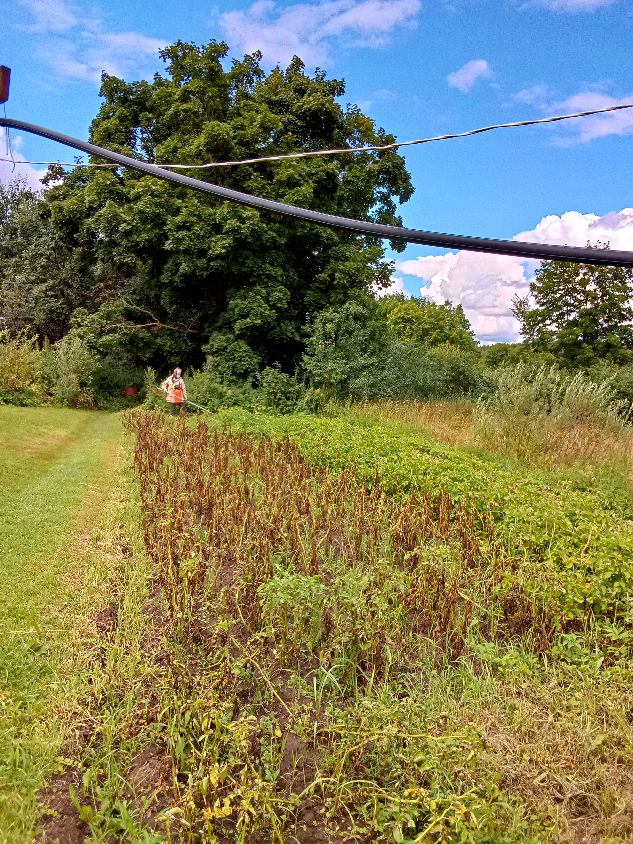 3,14.дец подкрался практически незаметно или просто просмотрели с бабкой отвлёкшись на ремонт водопровода. Буквально за пяток дней картофель Скарб лишился листвы, торчат одни зелёные палки, а Алуэт рядом стоит пока ещё зелёный. Не разбираюсь в болезнях грешу на фитофтору. Сегодня выкопали три куста, примерно полведра, картошке ещё расти и расти, сажали 20 мая.