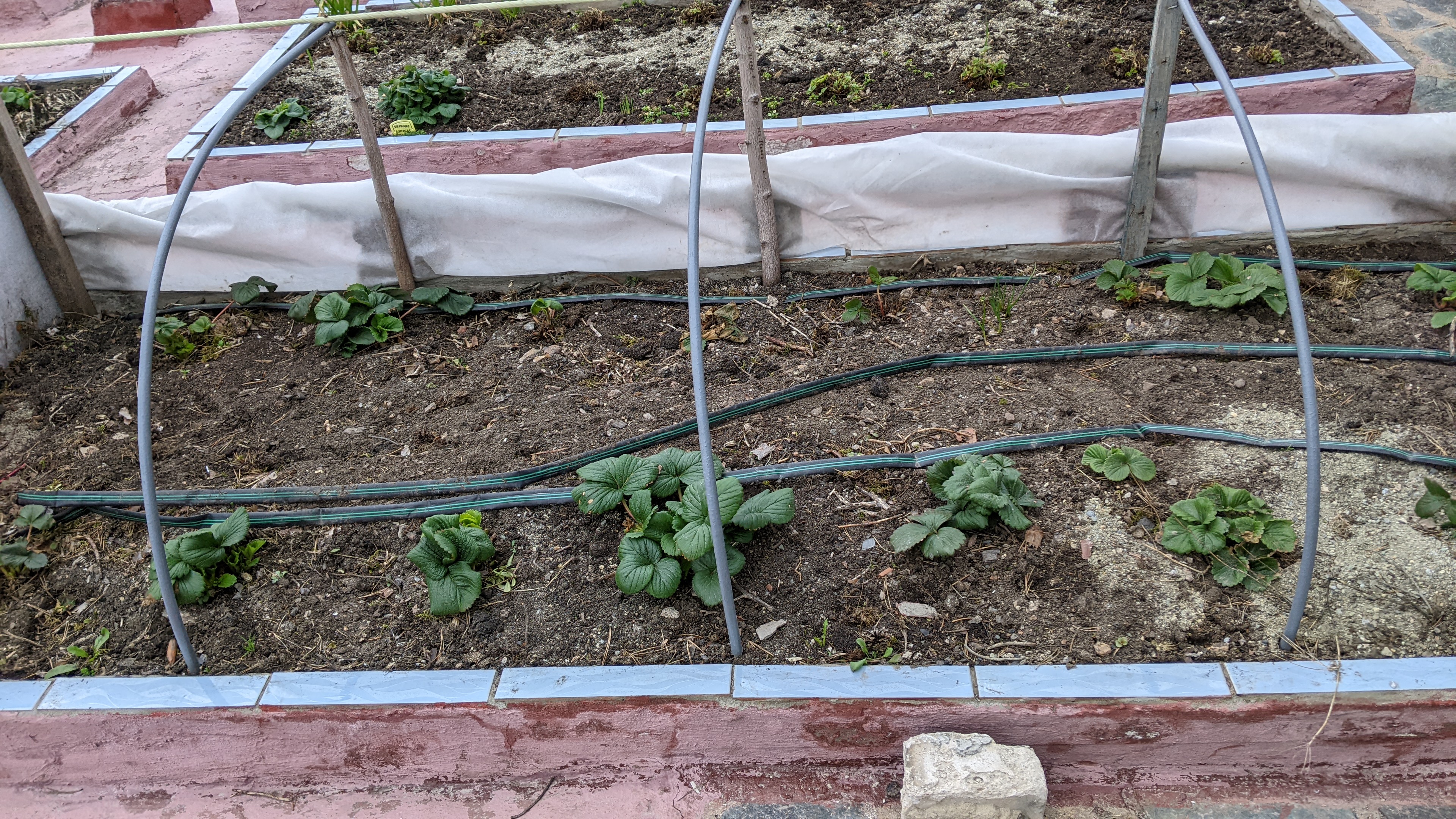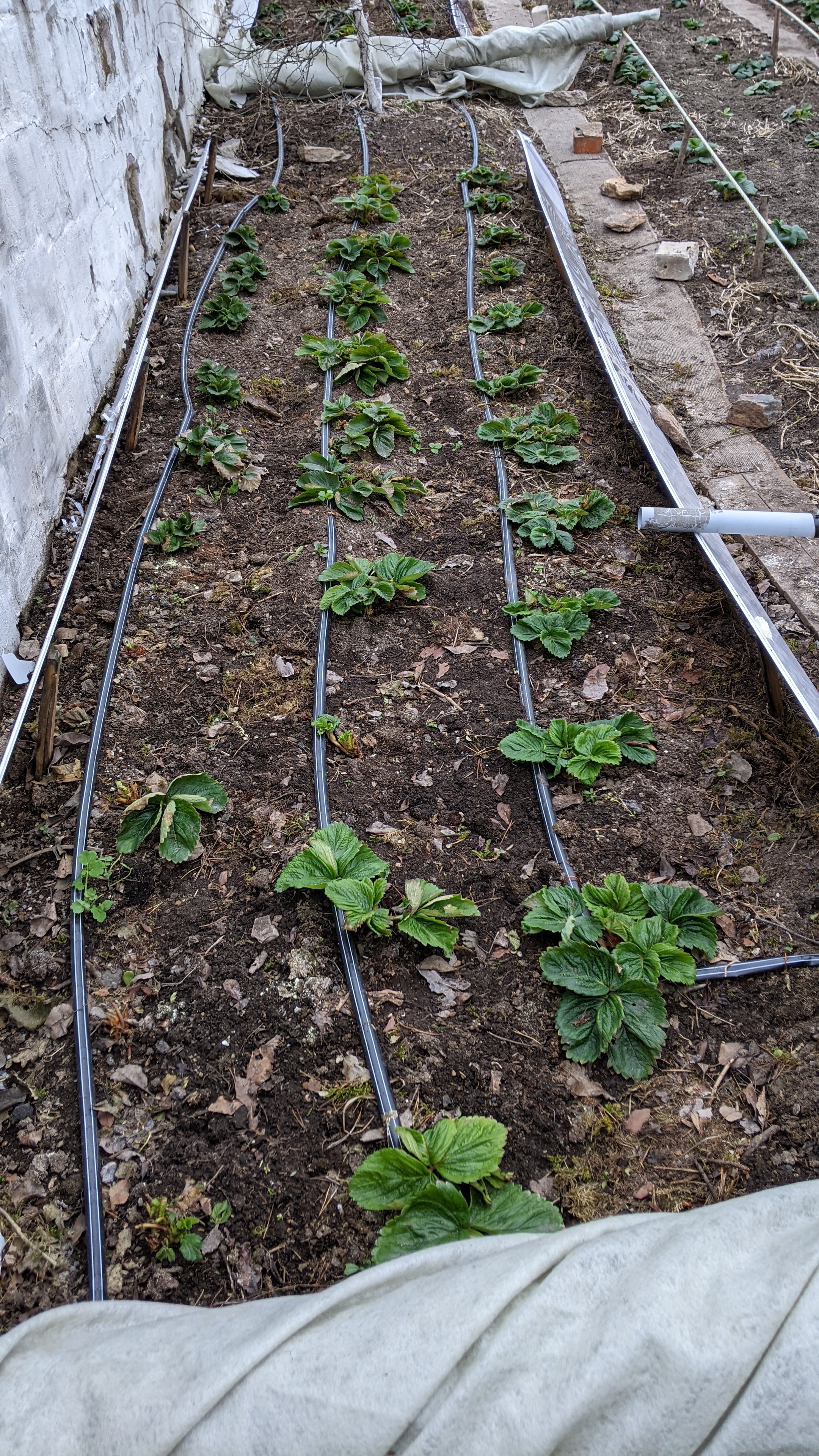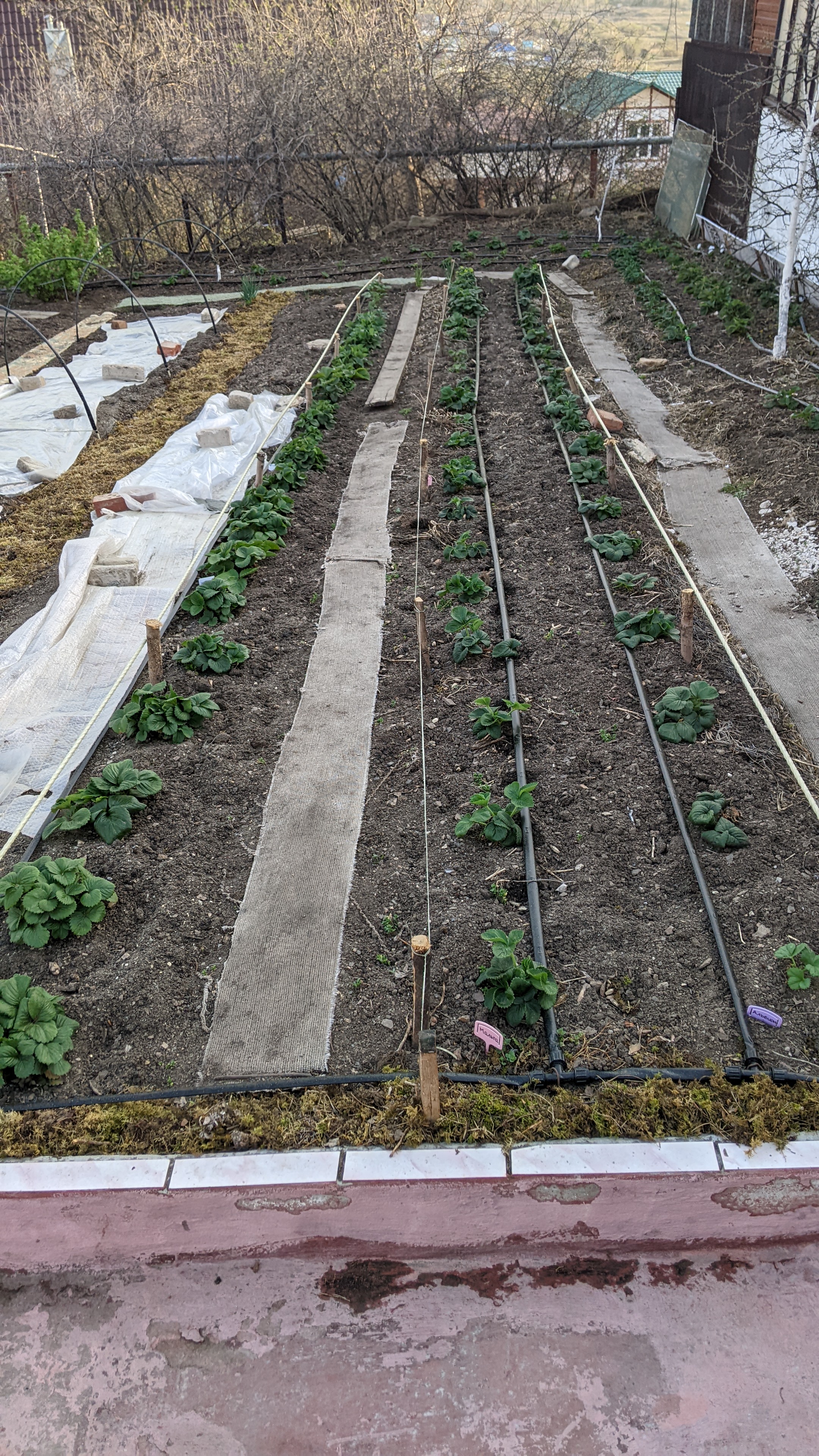 И я не вижу смысла в протыкании. А вот дырявое укрытие по дугам мне понравилось. Листики под укрытием были зеленее, чем рядом, без плёнки. И зацвели раньше. Но тогда пришлось их укрывать уже более плотно от возвратных морозов весной. Но всё равно урожай там был раньше. В этом год снова укрыла небольшой кусочек грядки в два ряда, оставив торцы открытыми.