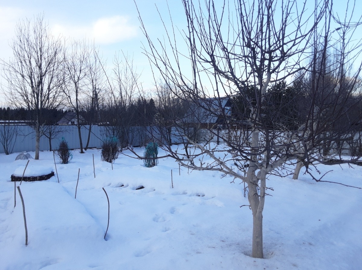 Где-то там, по промерзшей земле и под плотной ледяной коркой земляничные и чесночные грядки. Чеснок замульчирован листовым опадом, земляника утеплена сеном.