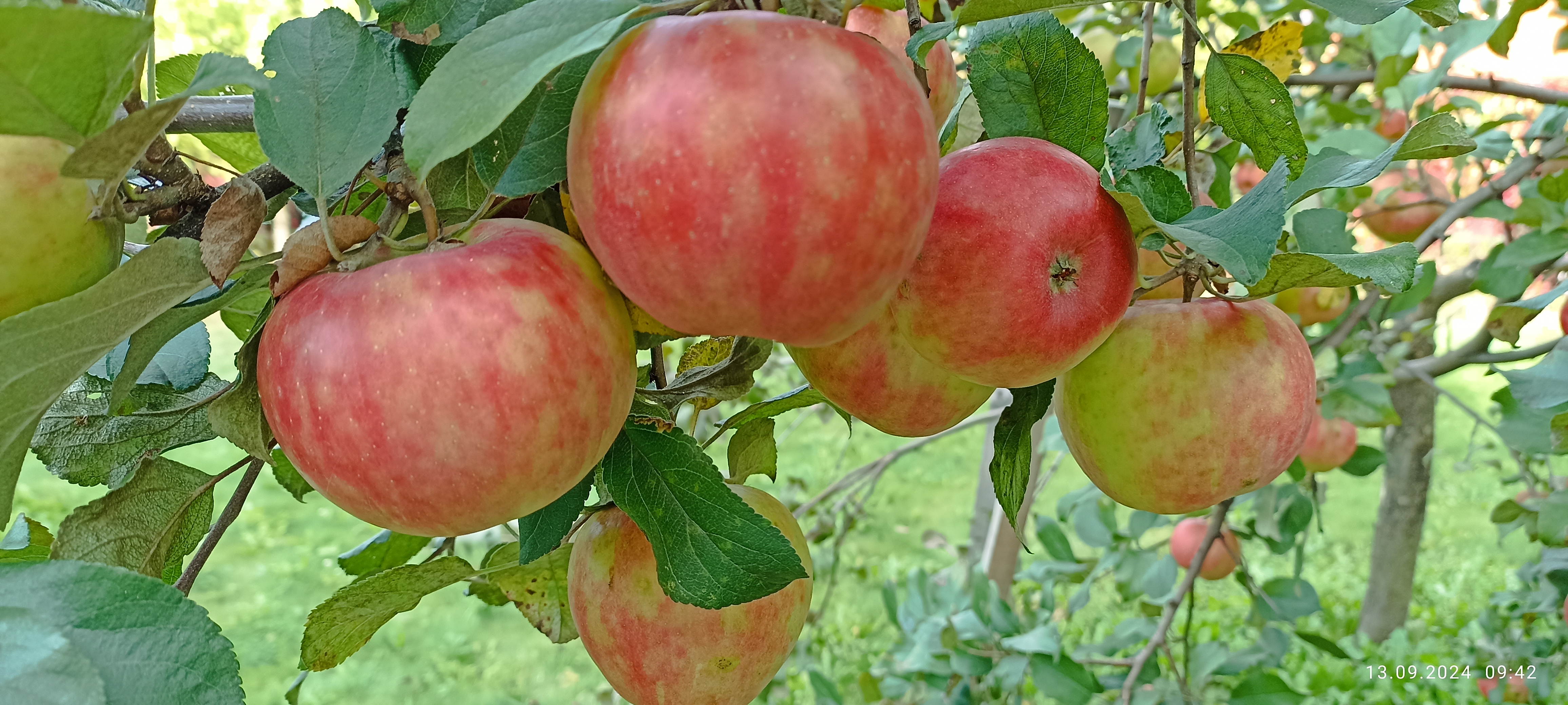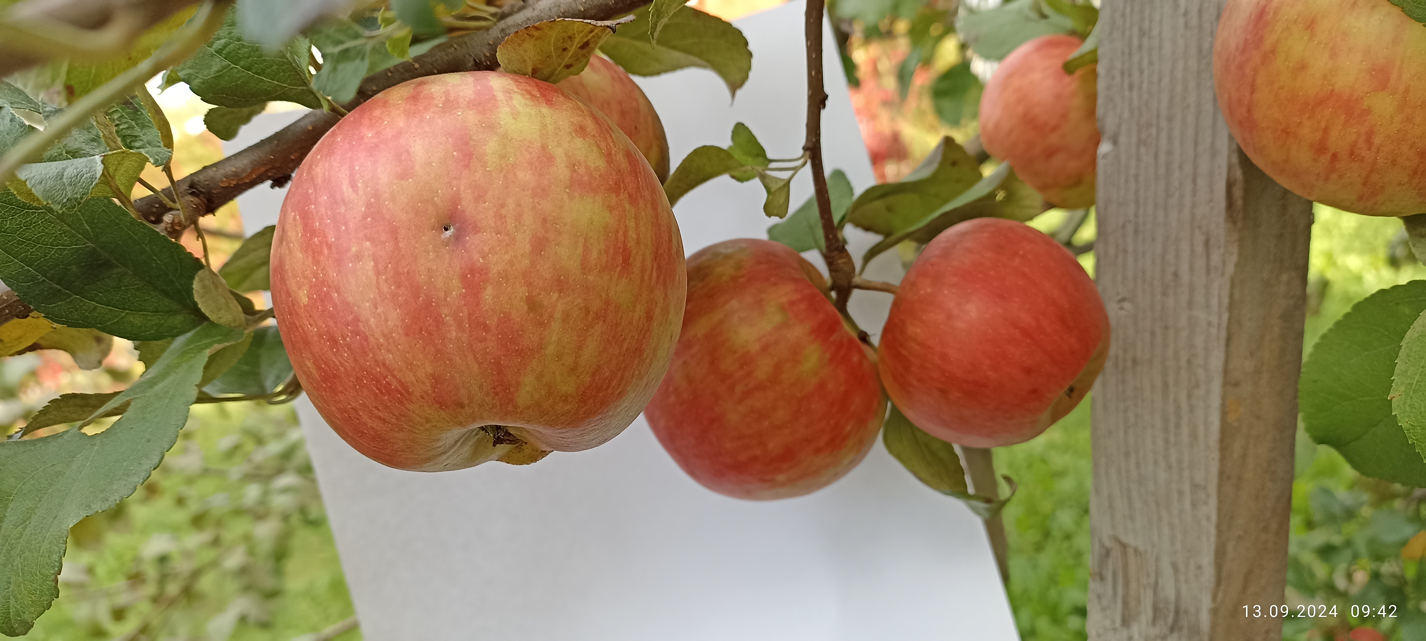 Вот, зафотал. Причем такие, только на одной ветке, на дугих нема. На этом же дереве, Воробьевское и Памяти Сюбаровой, тоже нем аKoldir писал(а): ↑11.09.2024, 23:41 Знатоки "вироидов", подскажите, если яблоко поражено этим недугом (например, наблюдается "пятнистость"), оно в процессе полного созревания равномерно окрашивается в конце, или так и остаётся "пятнистым" ?
