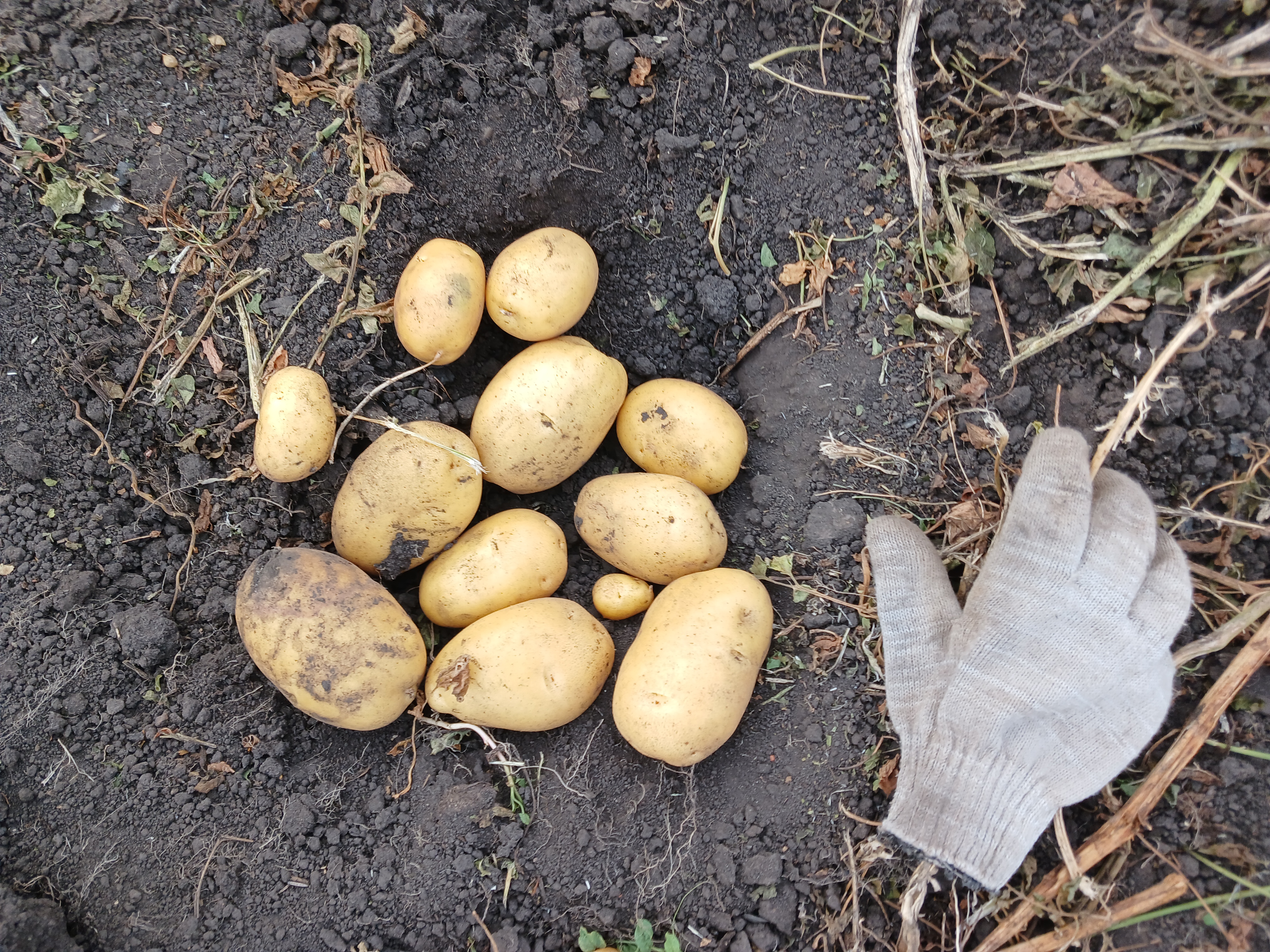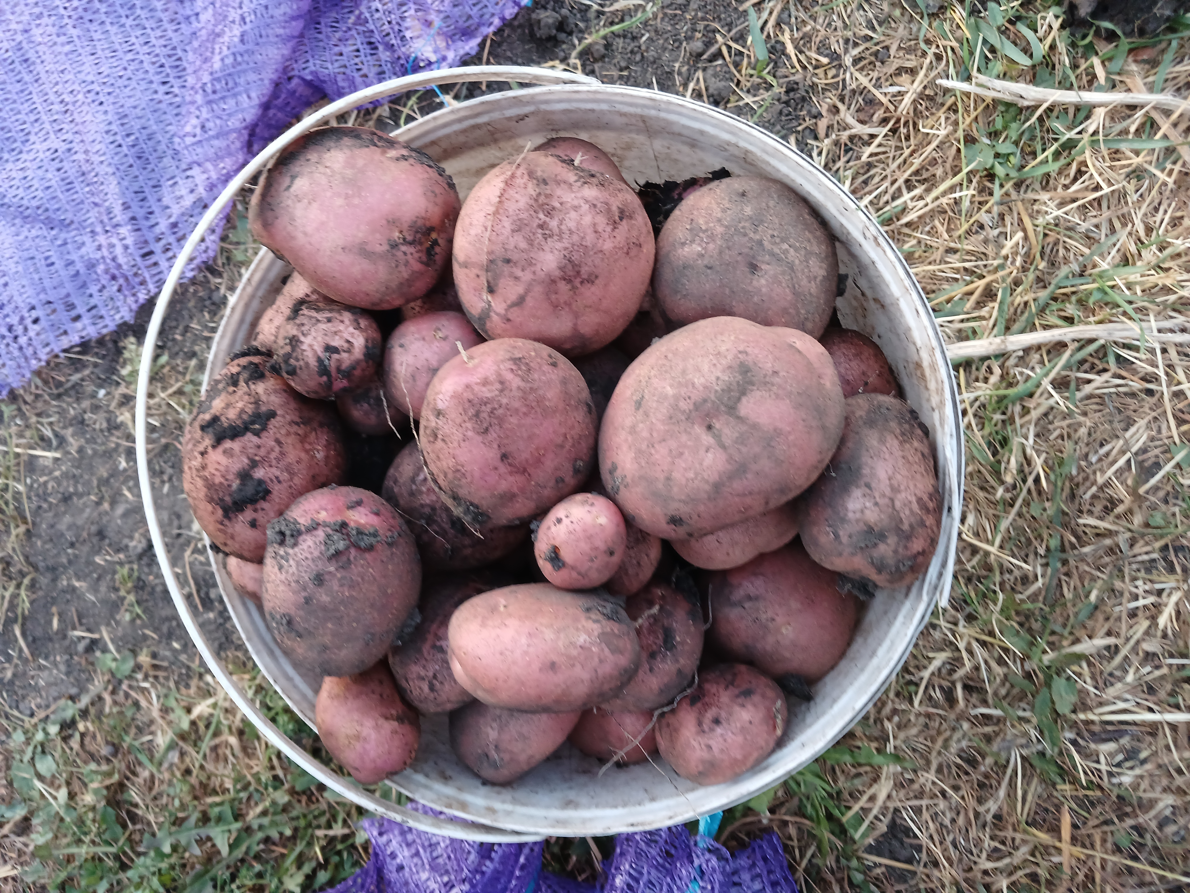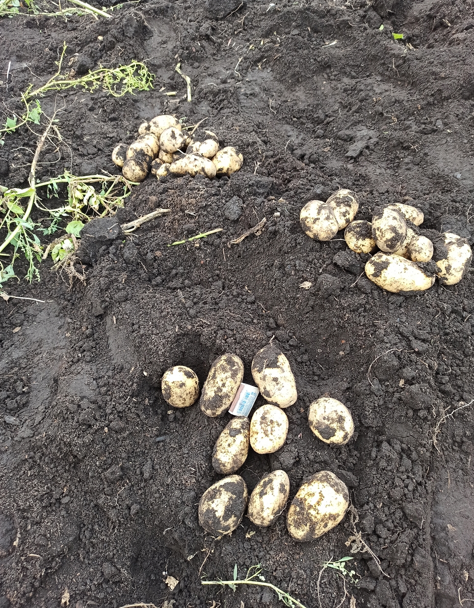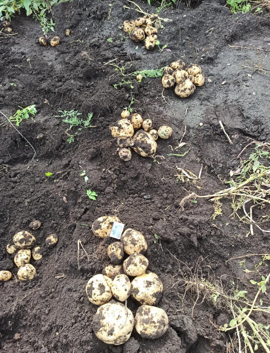Мы выкопали свою картошку. Порадовал Метеор, клубни средние и крупные. Панда мелковата, подхватила ФФ по ботве(обработок не проводим) Коломба покрупнее, хотя её ботву ФФ поразила самую первую.