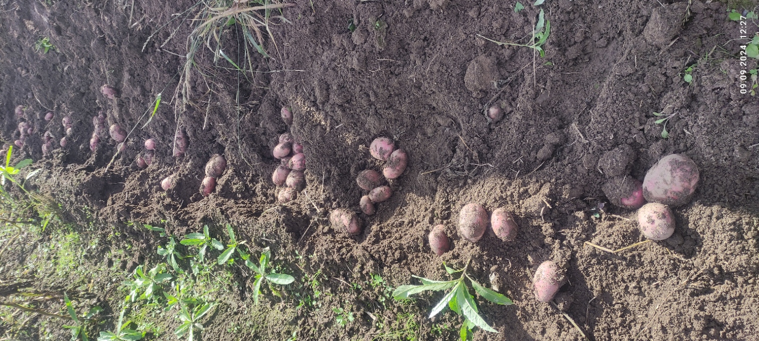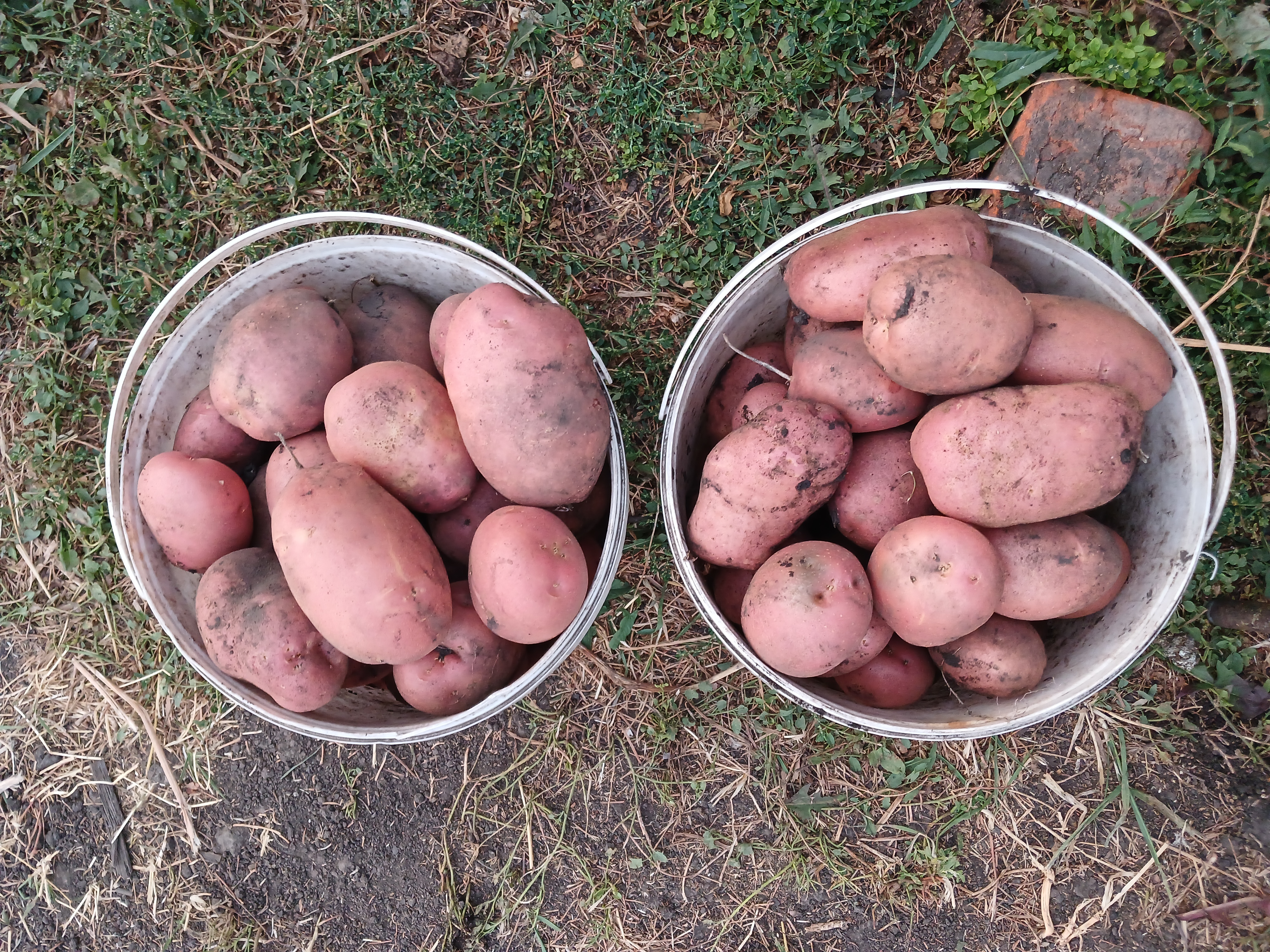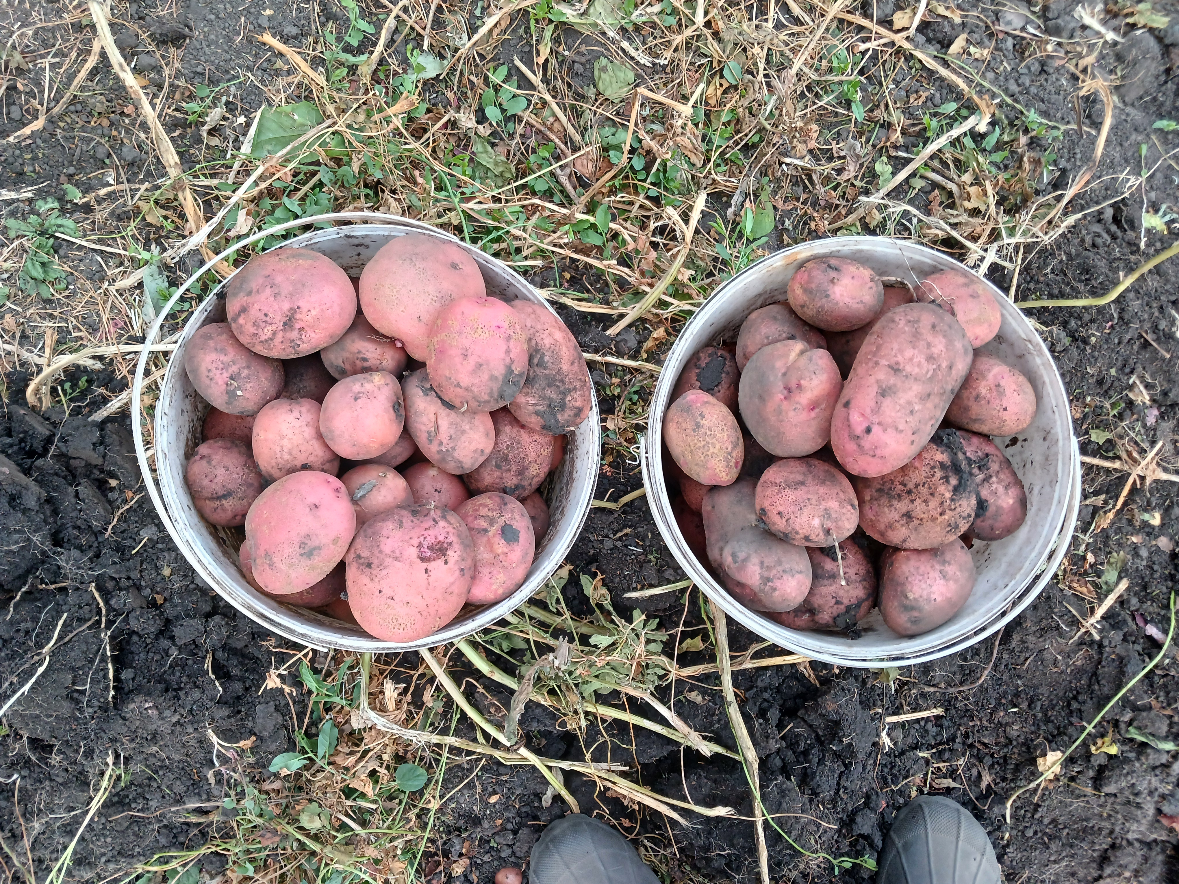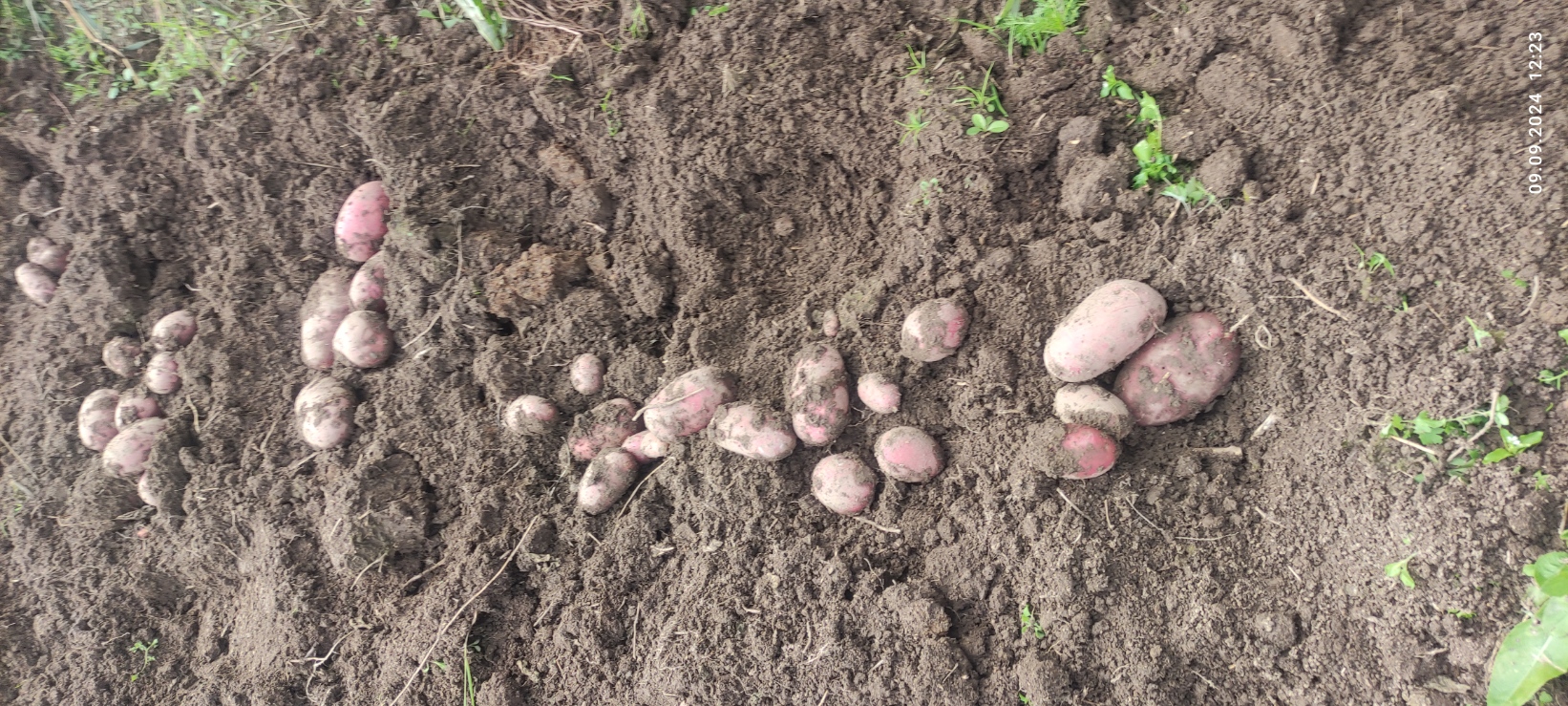 Мы выкопали свою картошку. Порадовал Метеор, клубни средние и крупные. Панда мелковата, подхватила ФФ по ботве(обработок не проводим) Коломба покрупнее, хотя её ботву ФФ поразила самую первую.