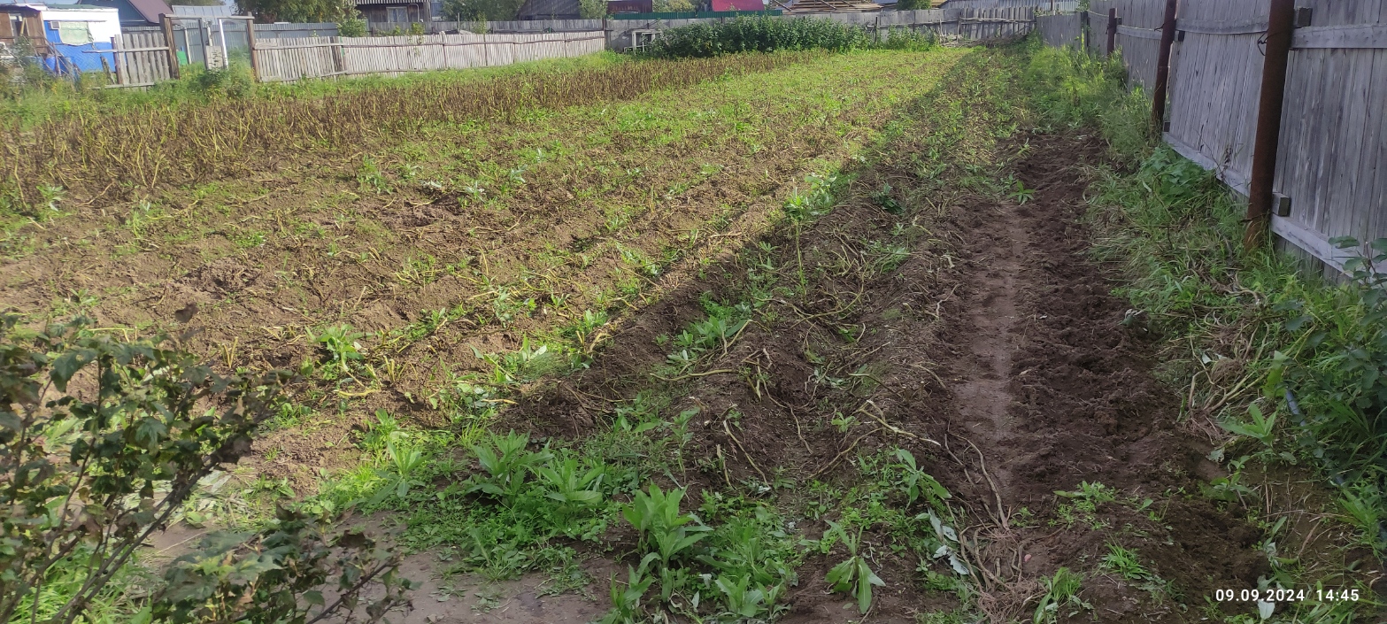 Скосил ботву, подготовив свою часть участка с Королевой Анной к уборке мотоблоком