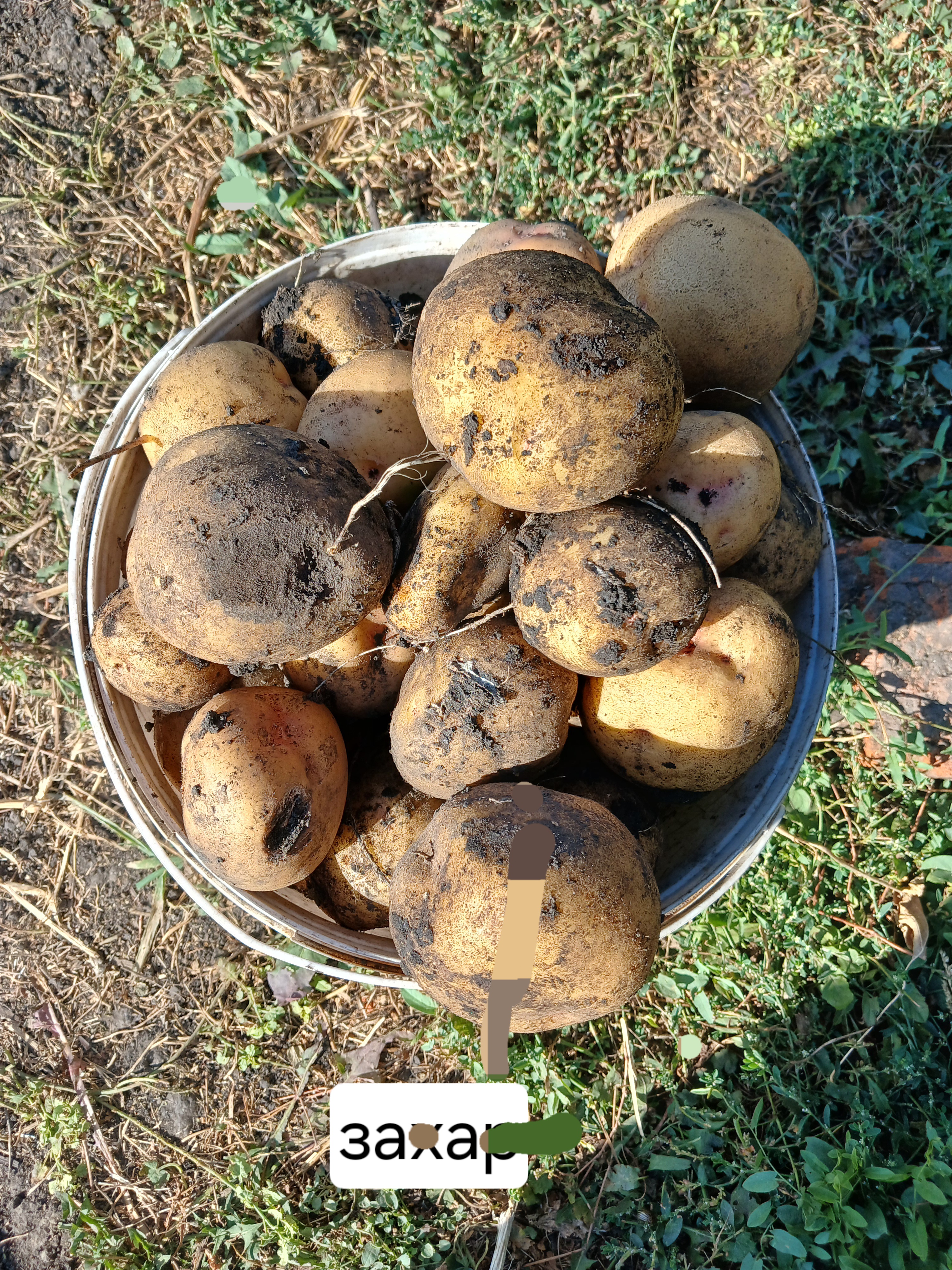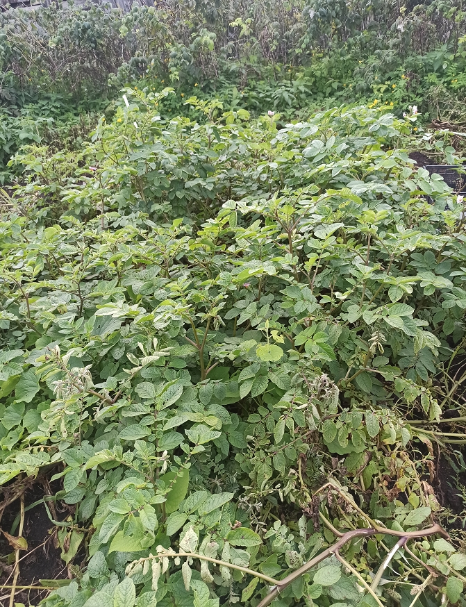 Отпишусь маленько. В субботу покопал немного картошку периодически прерываясь из-за дождика. За неделю фитофтора почти все сорта убила, Шарвари пирошка держится, еще и цветочки есть). Еще какой то сорт стоит и цветет, выкопаю посмотрю по схеме чего это. Скорее всего который мне с Минусинска дали под местным названием "Черепашка")