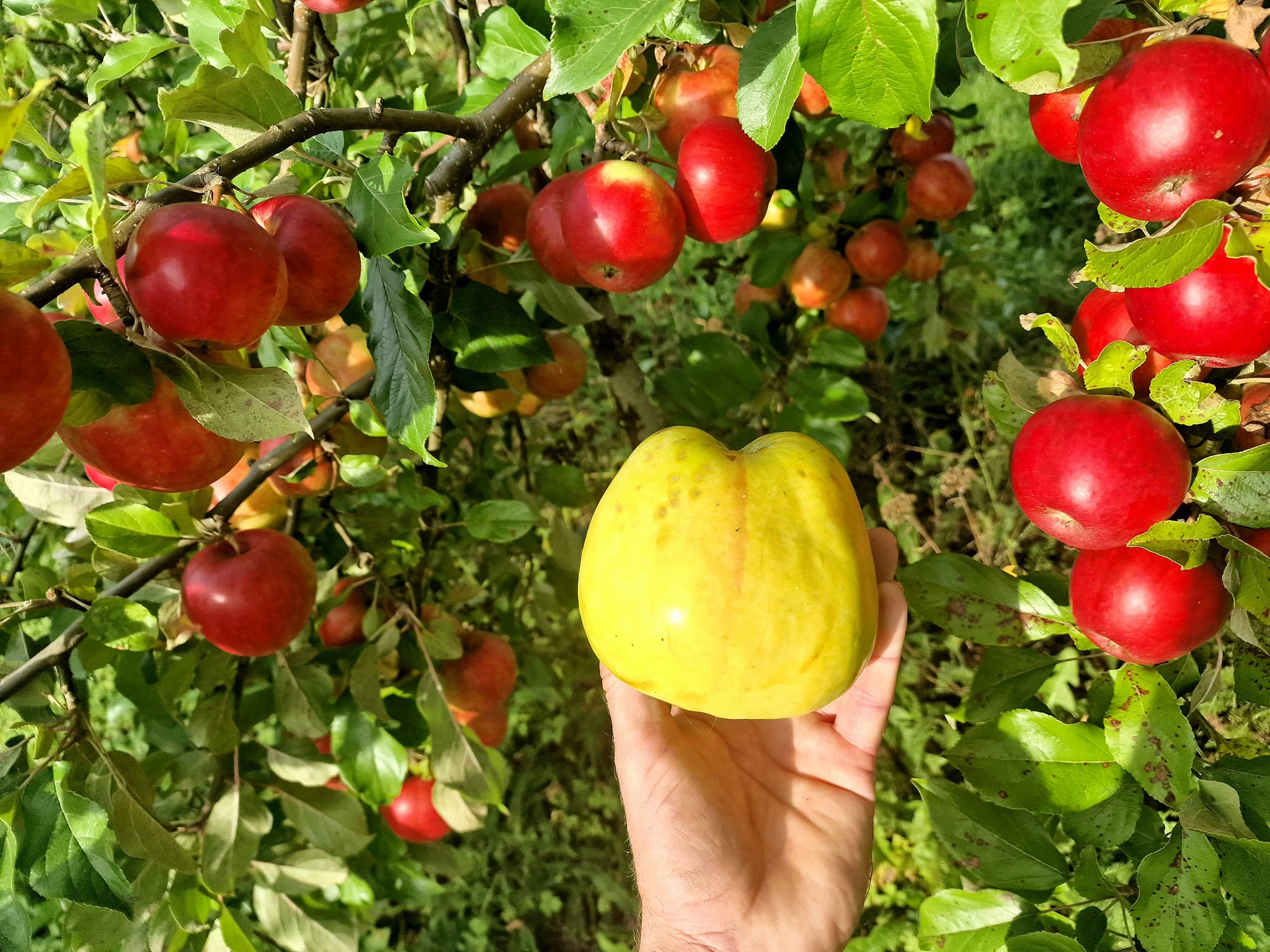 В этом году мой Энтерпрайз практически без яблок. Вот у подруги (сад тоже в нашей деревне) яблок на Энтерпрайзе достаточно. Одно сегодня упало (повреждено плодожоркой) - ну совсем еще не готово.