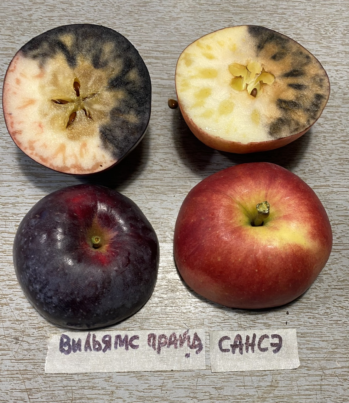Посмотрите на йодный тест, какое, по -вашему, яблоко, ВП (слева) или Сансэ (справа) перезрело или недозрело?