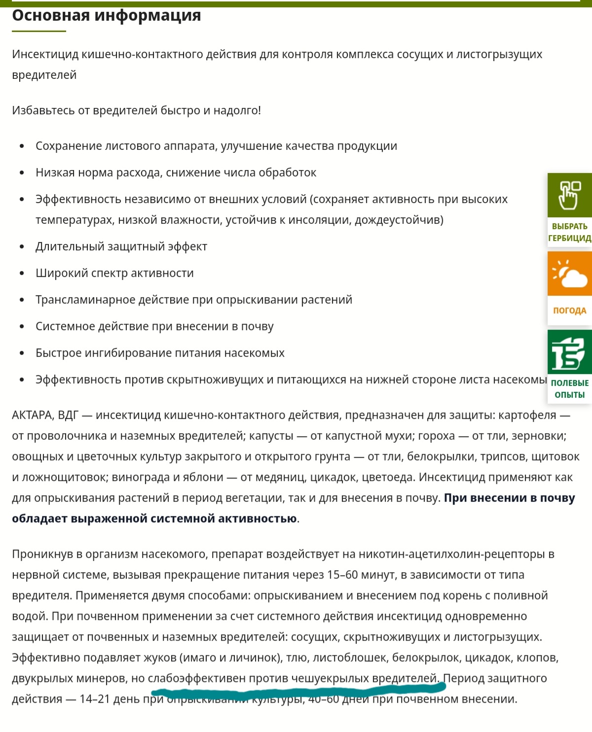 Боюсь, что это неверное объяснение. Вот описание Актары с сайта Сингенты https://www.syngenta.ru/products/crop-p ... des/actara "Инсектицид кишечно-контактного действия для контроля комплекса сосущих и листогрызущих вредителей". При внесении в почву обладает выраженной системной активностью.