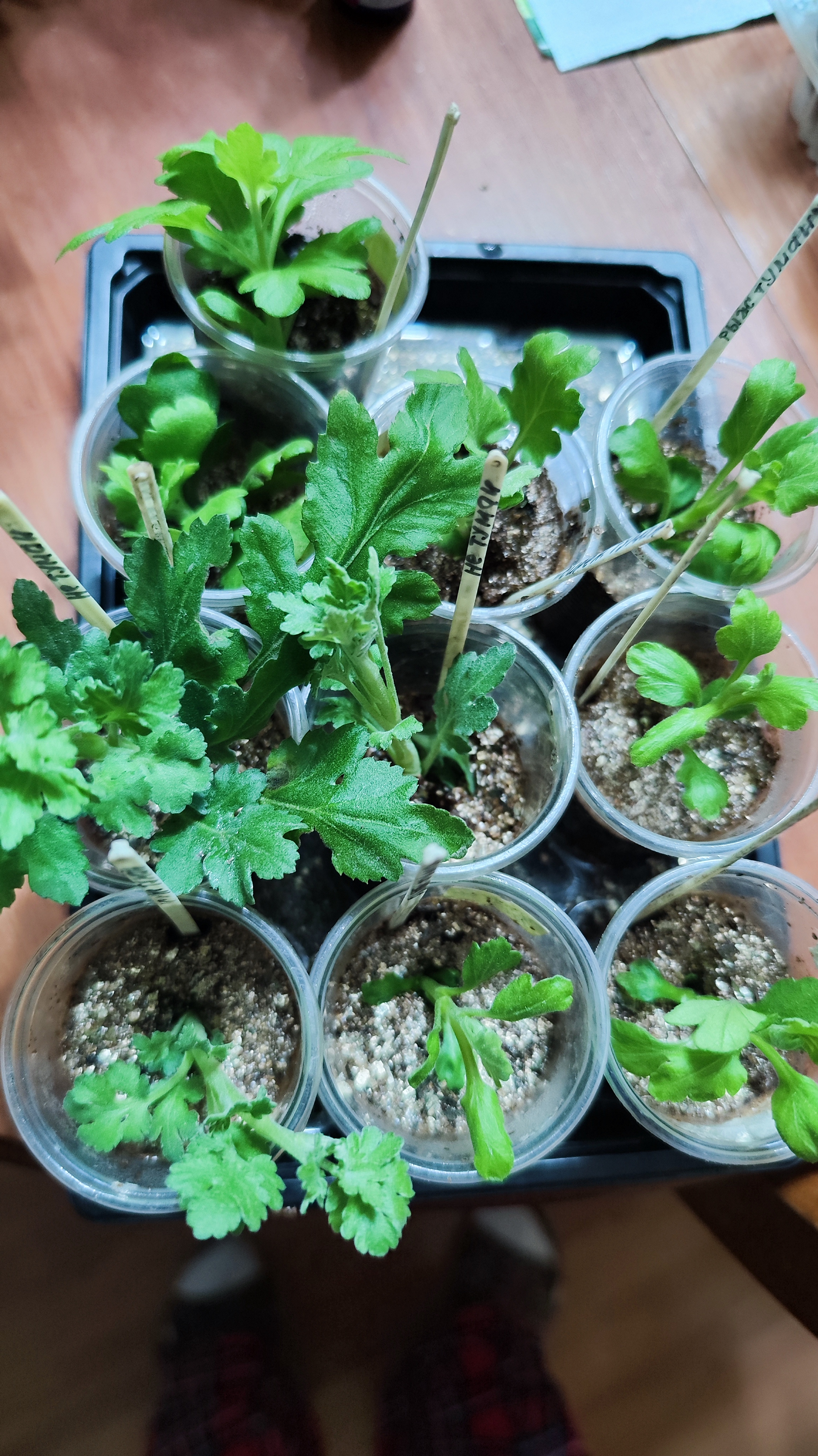 Таня. Да. Черенкую с осени. Привожу кустики и по мере отрастания срезаю. Но беру только корневую поросль. Она точно не зацветёт. Да и маточник у меня к декабрю обычно уже засыхает. Не знаю почему. Стоят под лампами, пока корешки пускают. А потом по разному. В основном до января- февраля под лампами, а потом там место кончается. Уходят на балкон.