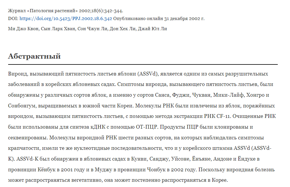сорта яблони "Неро 26" (Коганезава и др., 2003). Сообщается, что груша и хмель также поражаются этим вироидом (BA