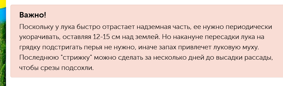 В чем вред от обрезания листа и корня при посадке рассады лука Ваши замечания меня не убедили. Я же ранее говорил-рассада лука из семян плохо растет. Ну понятно же, что корневая по определению у него слабо развивается. Поэтому и плохо растет. Причем теперь тут подсыхание листа и подобное. Заболтать что ли заданный вопрос?