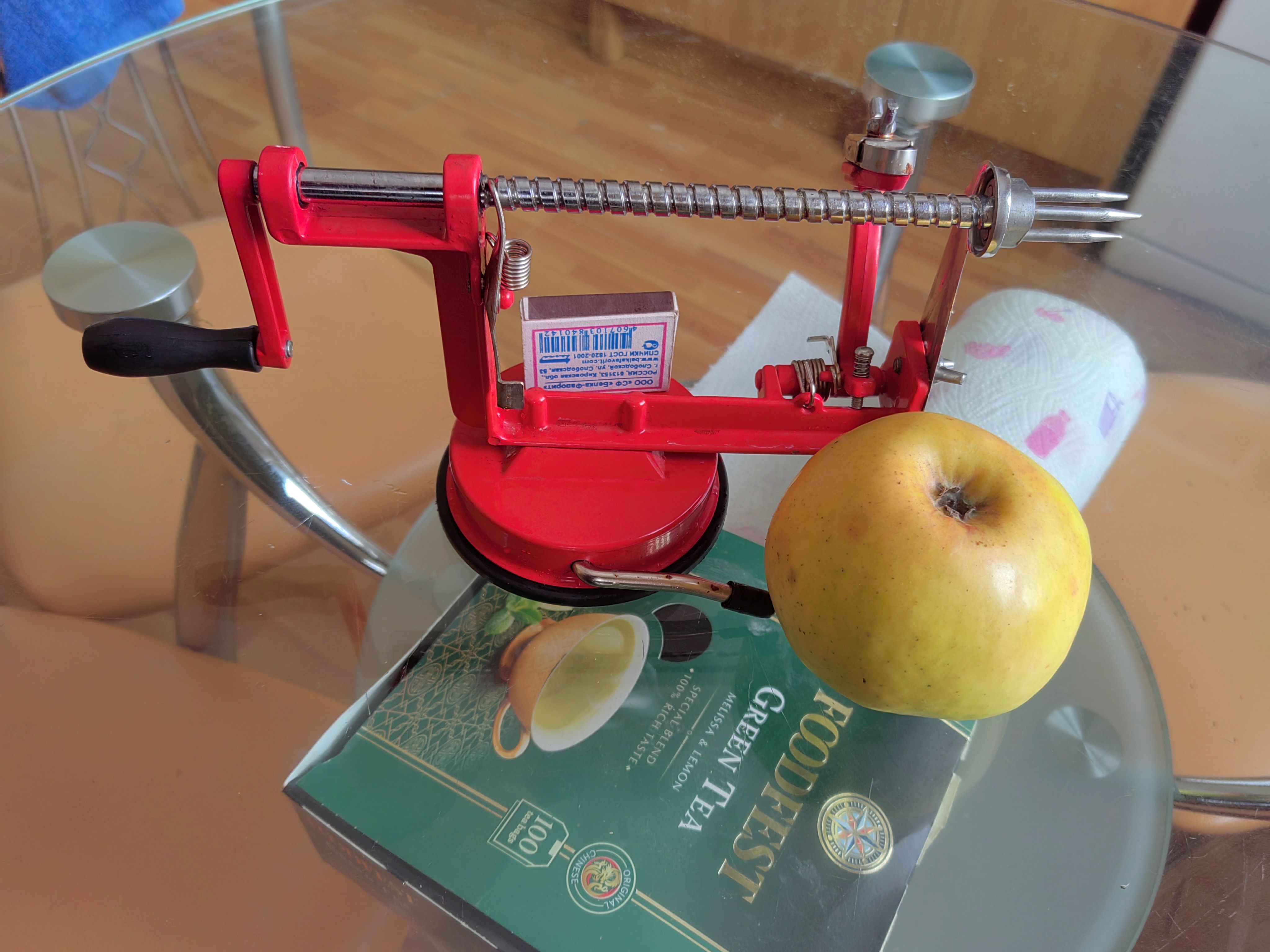 Диас, настраивать нужно, я приспособился, без проблем для яблок симметричной формы крупных и средних с твердой мякотью, получаются на сушилке сухофрукты премиум класса.Вот минута, Мартовское,и добавляйте сливки и ...Диас писал(а): ↑27.11.2023, 13:55 Приобрёл такую для очистки кожуры хурмы для вяления целой. Что-то пошло не так... Чашечка плодоножки плотная, не протыкается. Яблоки насаживаются, но чистятся-режутся коряво. Надо вроде как регулировать? И вообще вроде это приспособление вроде как для нарезки фигуристой картошки.