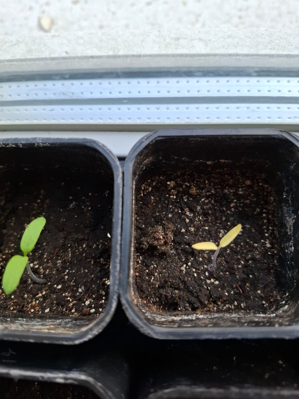 У меня впервые такое, что на некоторых всходах семядольные листочки томатов не зеленеют на свету. Подскажите, что это за явление. Они погибнут? Из семи всходов два желтые и зеленеть не собираются.