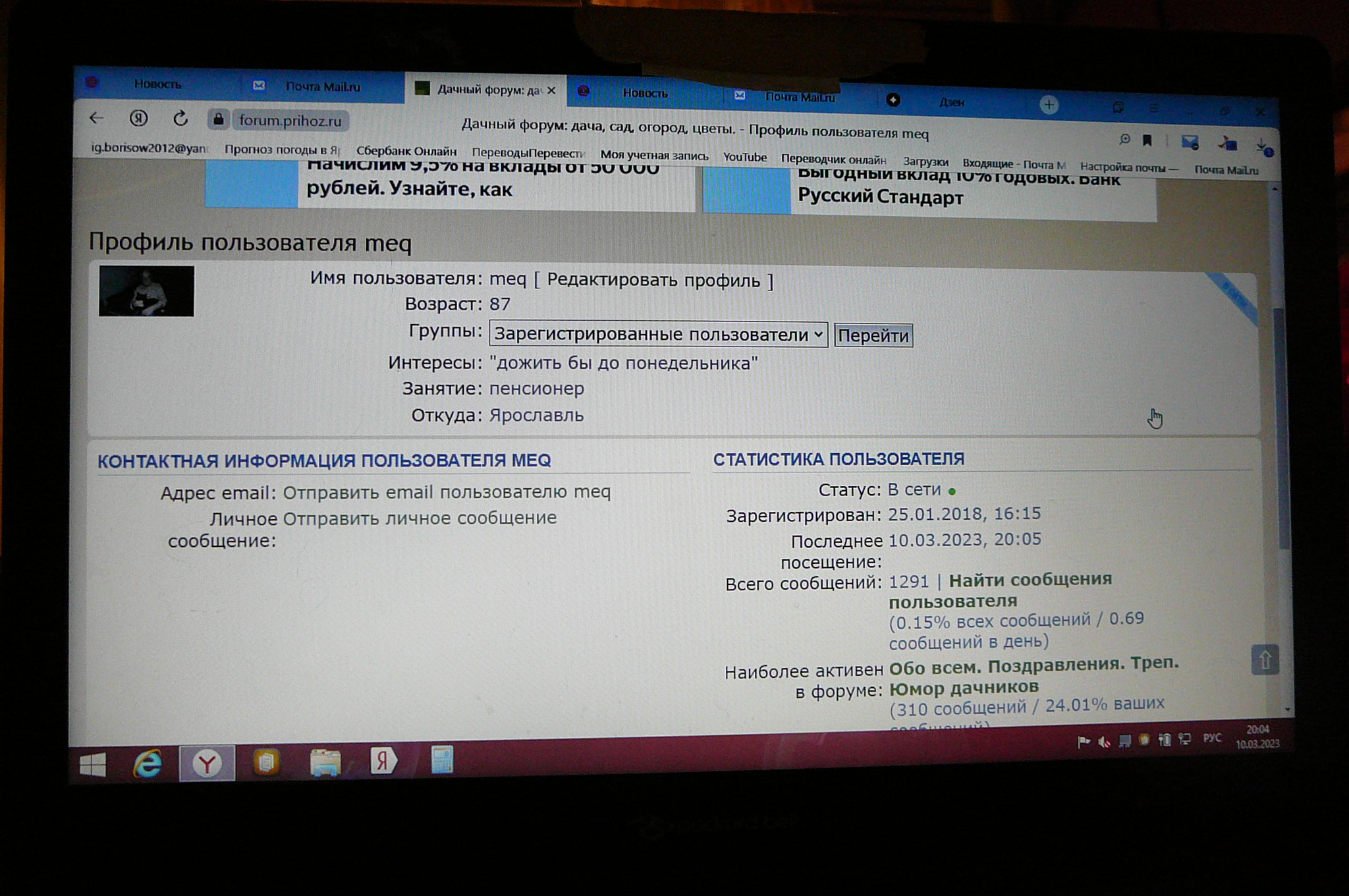 - Интересы: Земляника (в коллекции около 70 сортов), томаты (в коллекции 150 сортов). Ращу яблони, груши, жимолость; картошку-моркошку и проч. Любитель грибалки.