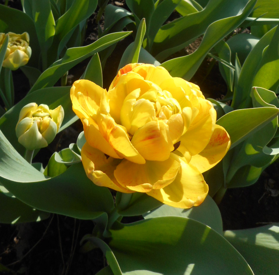 У меня вот эти самые ранние махровые. В середине-конце апреля зацветают. Может еще от того, что возле дома в теплом уголке сидят. Тоже достаточно высокие, с крепкими цветоносами. В этом году уже отцвели. Очень неприхотливые. Уже лет 10 у меня живут при минимальном уходе. Когда то брала от Русского Огорода под названием Желтый Помпон ( на английском было название ).