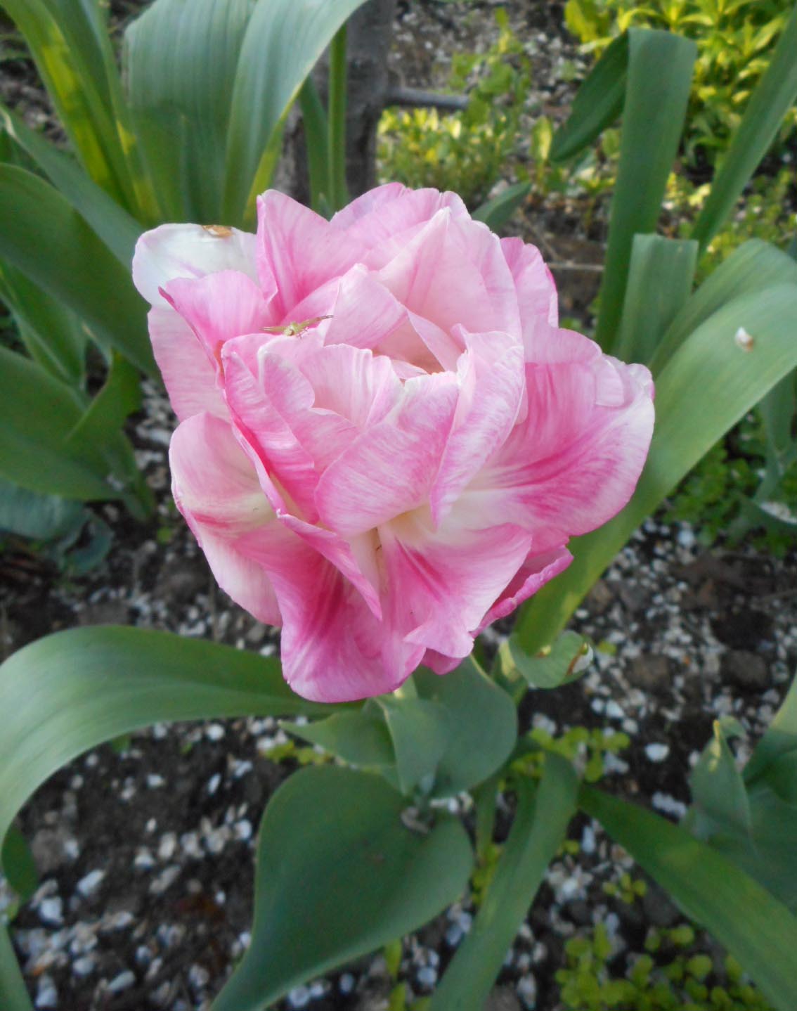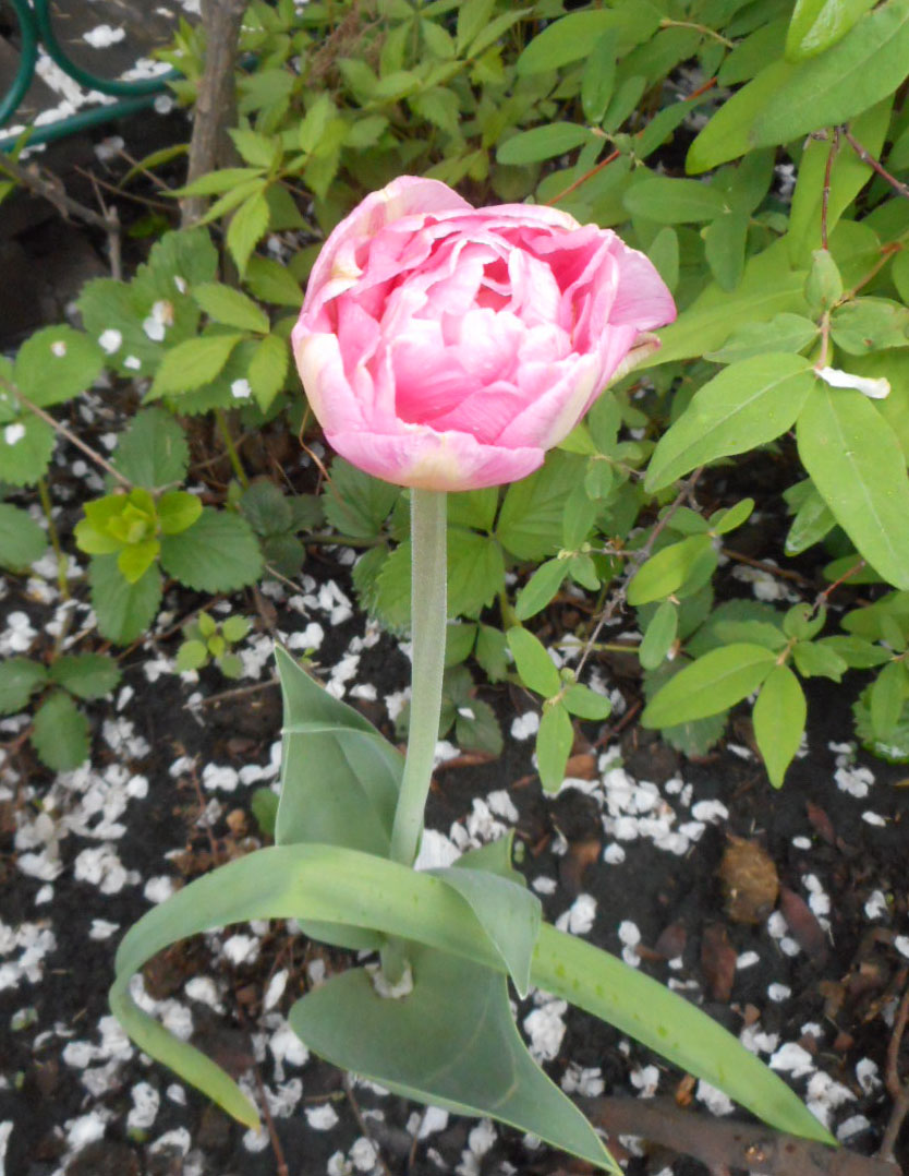 Таким густо-ярусно махровым, как заявлено в описании, он у меня не получился. Но считаю что цветок просто не раскрыл свой потенциал, не по росту, не по характеристикам цветка. Все луковки почему-то поделились. Из каждой получилось гнездо из 3-х тюльпанчиков.
