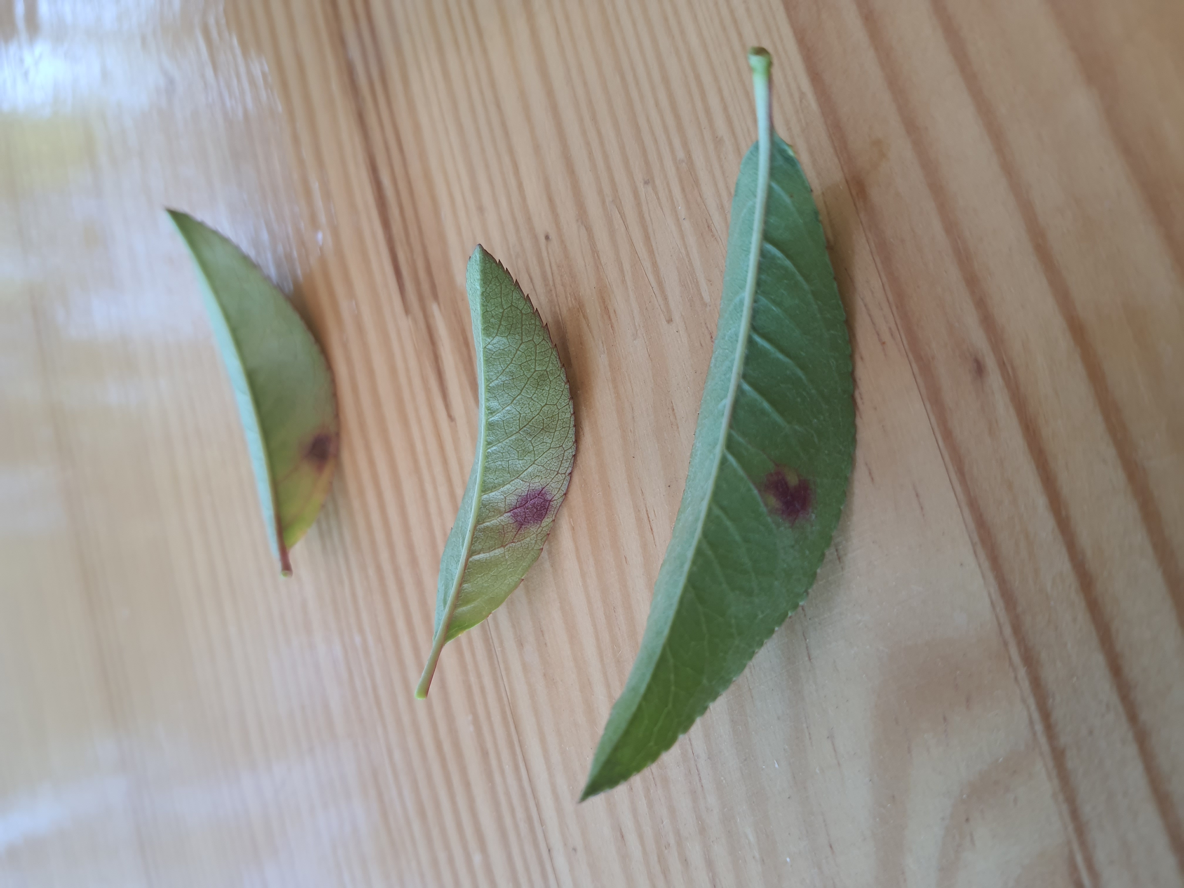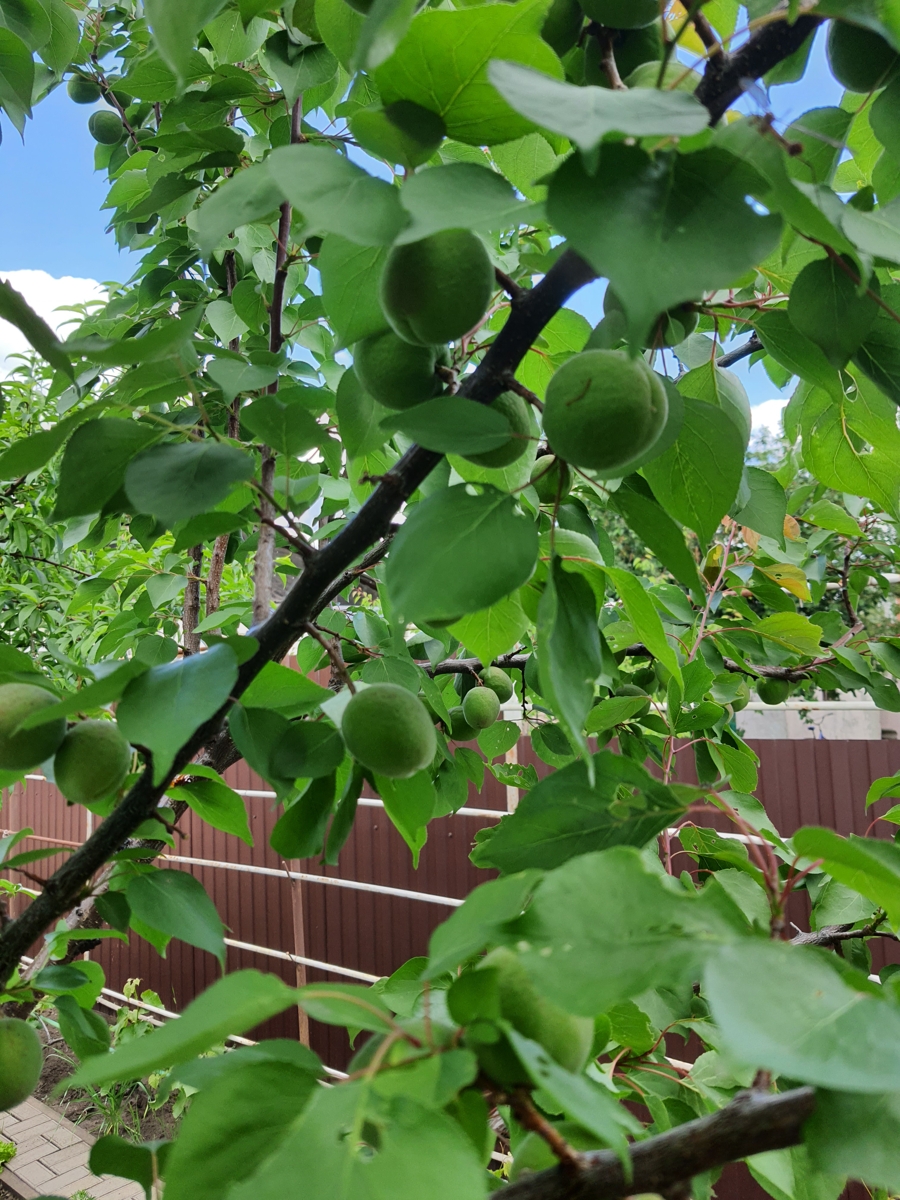 С курчавостью на персиках пока справился (ежедневное обрывание поражённого листа и одно опрыскивание баковой смесью со Скором). Что не отменяет внимательный ежедневный осмотр крон. Заодно вчера провёл первую калибровку отстающих в росте плодов.