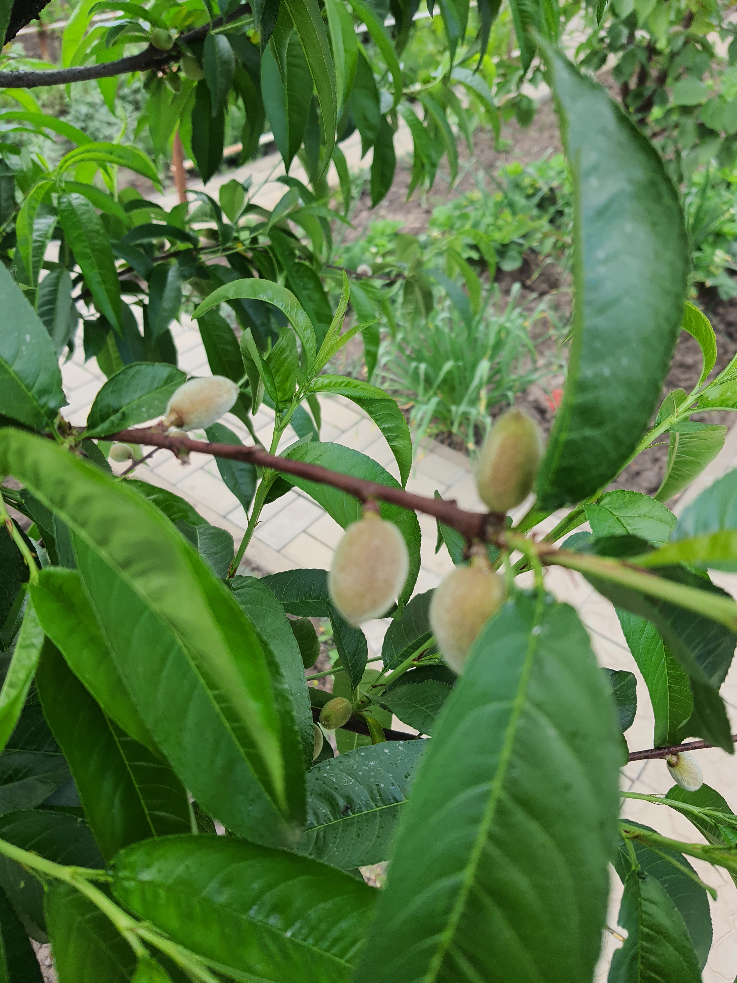 Но два персика какие то как сонные. Плоды вроде бы живут отдельно а листва отдельно. Нет роста молодых побегов. Как замерли.