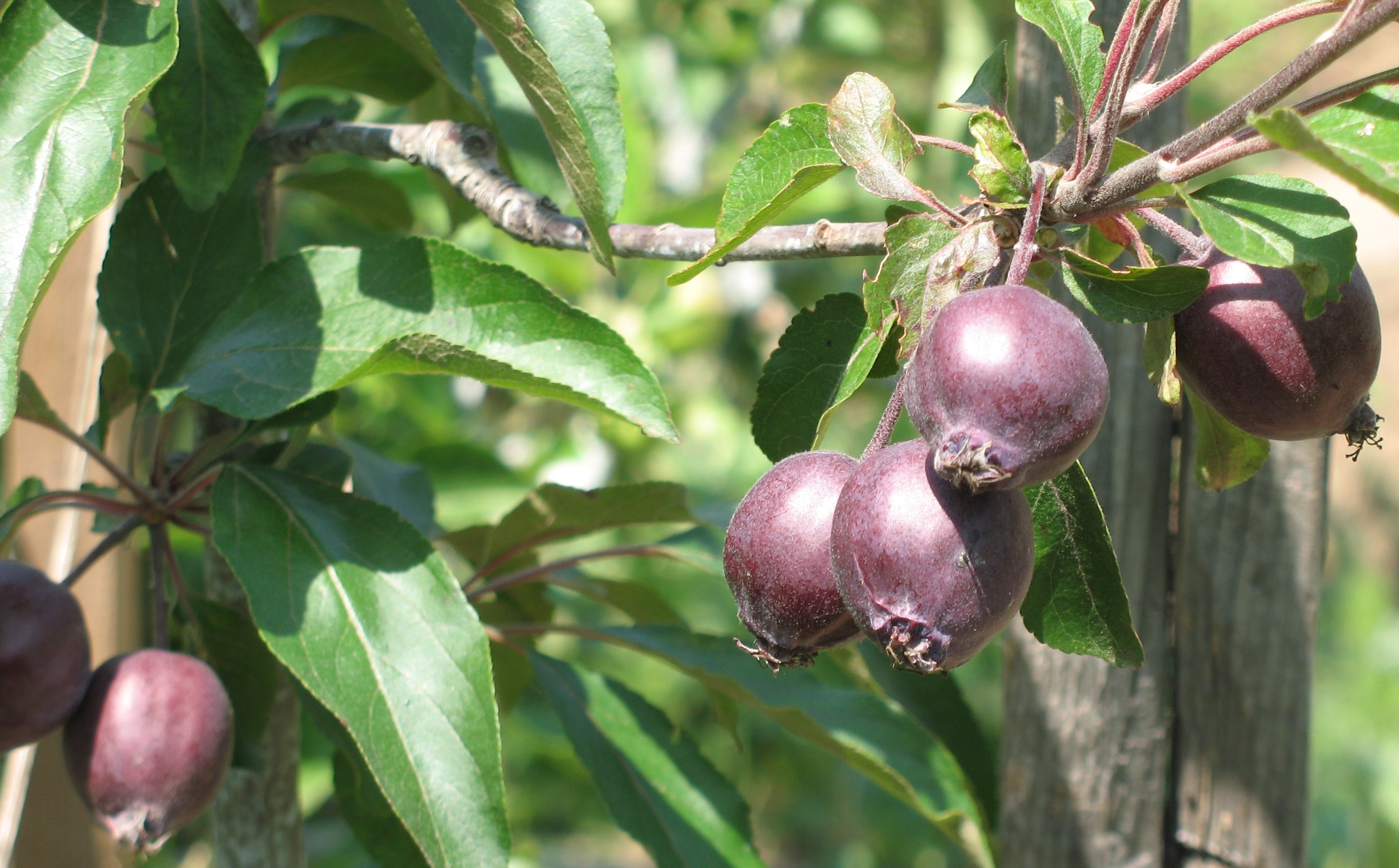 Сорт Джеромини - это компактные, низкорослые деревья с умеренной кроной. Очень удобны при посадке на участке - занимают мало места, зато дают огромный урожай. Яблоки как на подбор - все одинакового размера и весят в среднем 170 г. Декоративные на вид - они имеют темно-бордовый окрас кожицы и мякоть в розово-красных тонах. Она сочная и душистая, сладкая, на вкус с еле слышной кислинкой. Яблоня великолепно смотрится в саду, придавая участку неповторимый вид. Урожай снимают в сентябре и универсально используют. Вы знаете, что яблоко нужно есть с кожурой? В ней содержится основная масса витаминов. Этот красномясый сорт яблок содержит большое количество антоцианов - веществ, обладающих высокой антиоксидантной активностью. Именно они придают его мякоти интенсивную антоциановую окраску и повышают пищевую ценность плодов. Сорт считается морозостойким. Он выдерживает морозы до –40 °C.