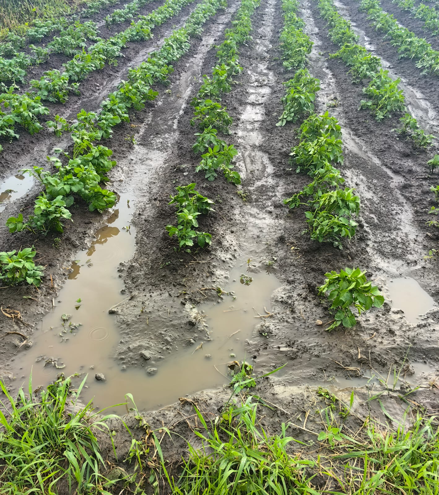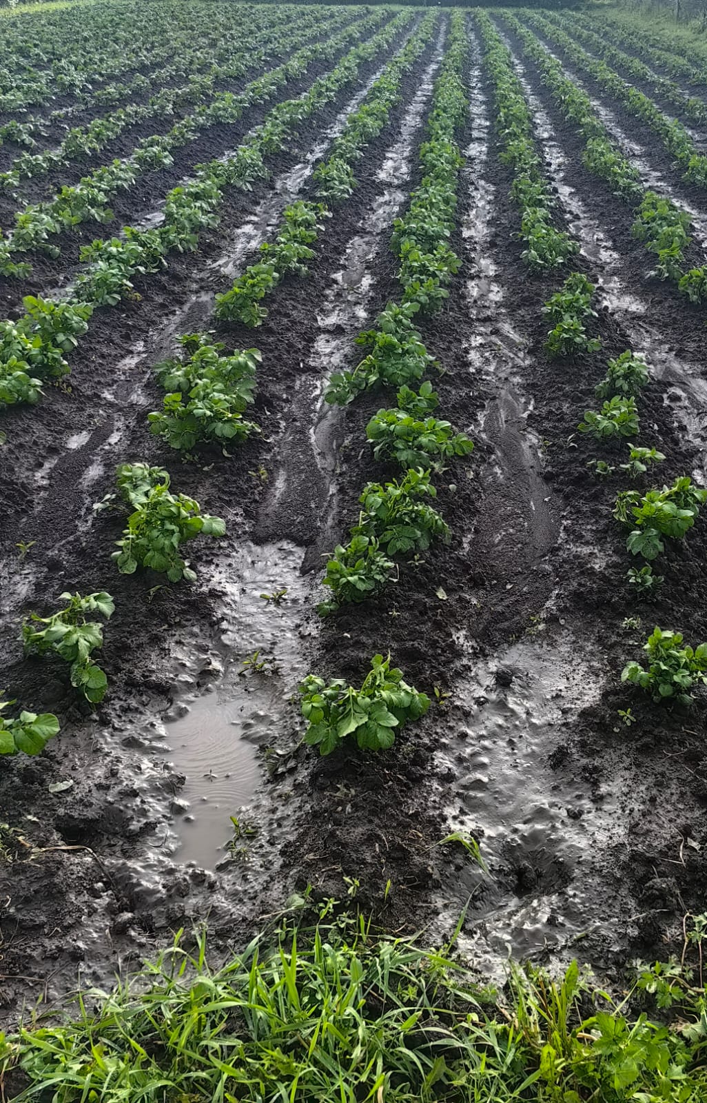 Мы ленту кладём после окучки трактором в междурядье.У нас обычно в июне влаги хватает,картофелю хватает завязать много клубней,а вот в июле и августе дождей мало и клубни слабо набирают вес.Влаги от капельной ленты в междурядье хватает в этот период для наращивания клубней,ведь всасывающие корни в это время уходят именно в междурядье,да и влага под землёй уходит и под гребни.Перед уборкой мы ленту сматываем и она идёт на следующий год.Так же при таком варианте ботва остаётся сухой что понижает заражения её вредоносными грибами.