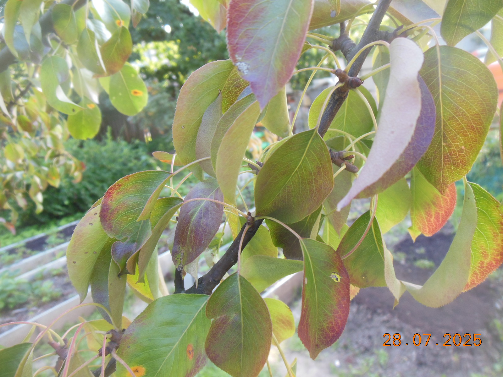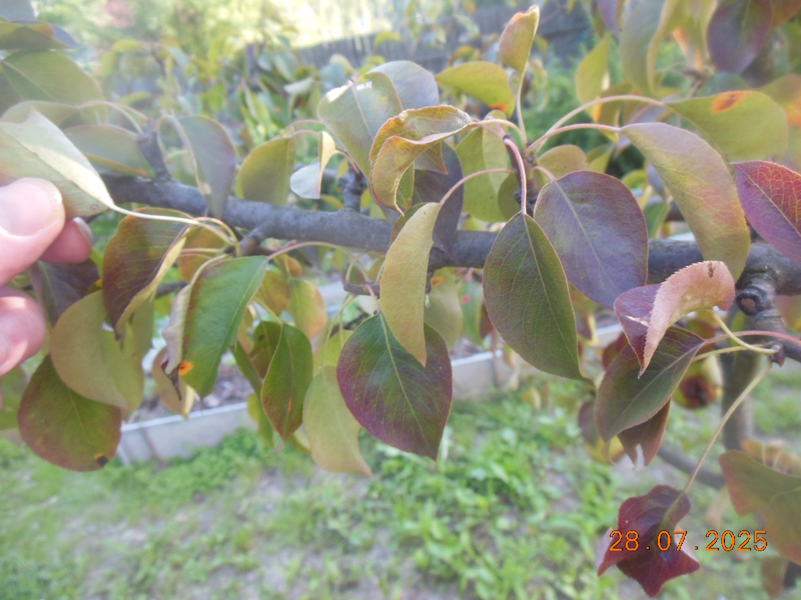 Что с грушей? буреют (краснеют аля свекла) листья. см фотки (груша Чижовская)