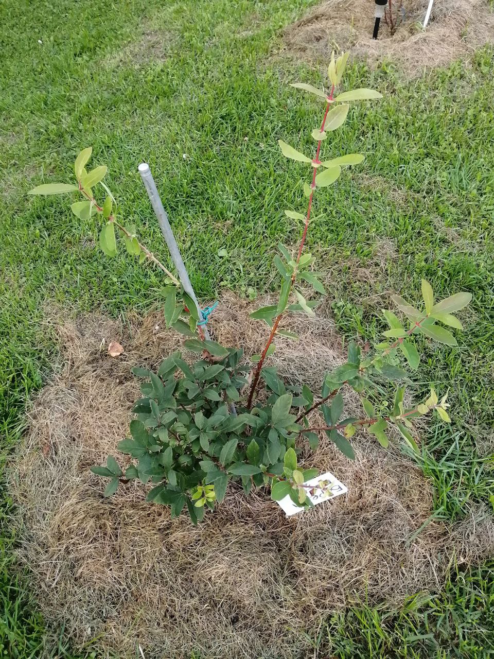 Сам саженец невысокий (22 см от уровня земли), хорошо увлажнён. Для одногодки выглядит прилично, даже отлично.