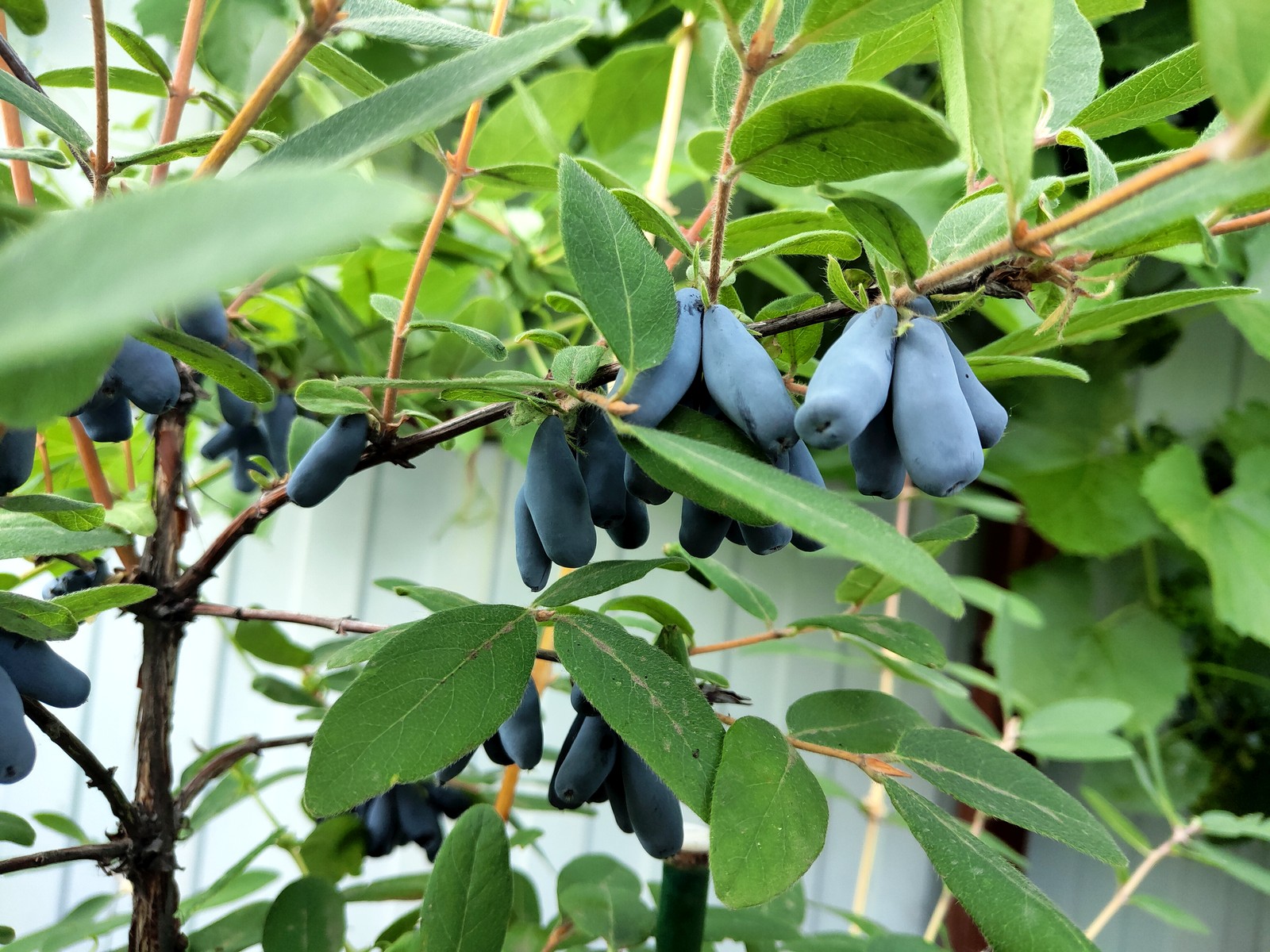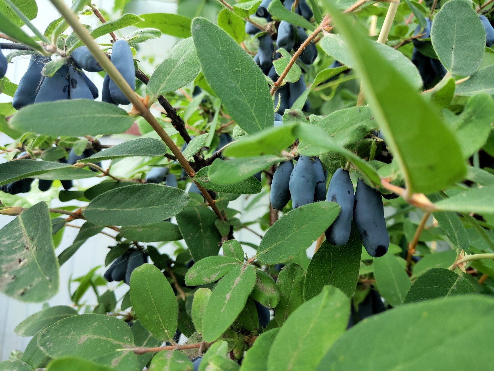 Лавина оказалась малоустойчивой к засухе. В этом году в июне Питер залило, в июле стояла жара, в августе похолодало, и как будто пошли дожди, но не над моим участком. Вот вроде как есть дождь, но то с одной стороны, то с другой, и близко совсем, но все в стороне, а у меня сухо. Жимолость весной прижилась, хорошо себя чувствовала в начале лета, и я перестала к ней подходить, на грядках работы хватало, а тут глянула, а Лавина-то сухая, лишь на отдельных ветках пара зеленых участков. Ахнула, скорее под нее ведро воды. Ожила, пошли новые зеленые листья, за нее теперь спокойна, правда, не знаю, даст ли она на том, что успеет отрасти в этом сезоне урожай в следующем году. Жимолость ращу впервые, совсем не знаю характера культуры, только вот из форума что-то почерпнула. Югана не сохнет, но тоже показалась погрустневшей, под нее было вылито ведро воды на следующий день. Уссульга вроде чувствует себя неплохо, прекрасную длинную ветку отрастила, пока в плане жизнестойкости и вообще энергичности она у меня в лидерах.
