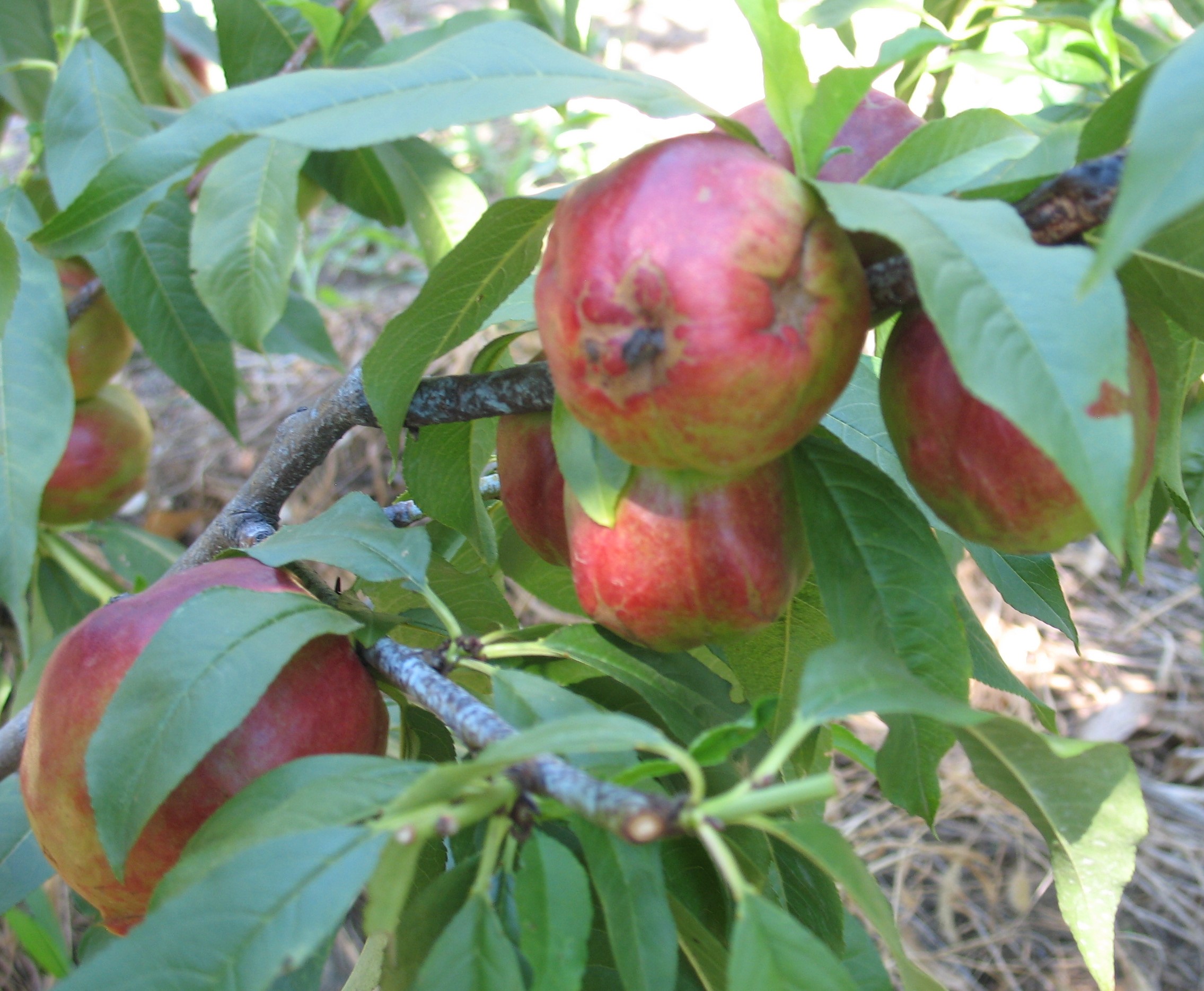 Сосед, у которого брал черенок на прививку, назвал этот сорт нектарина "Манго". Конечно, никакой это не Манго! Крупный, красивый. Но по сигналкам уже было видно, что болючий. А в этом году вообще полно вот таких уродцев :? Неужели вирус? :shock: