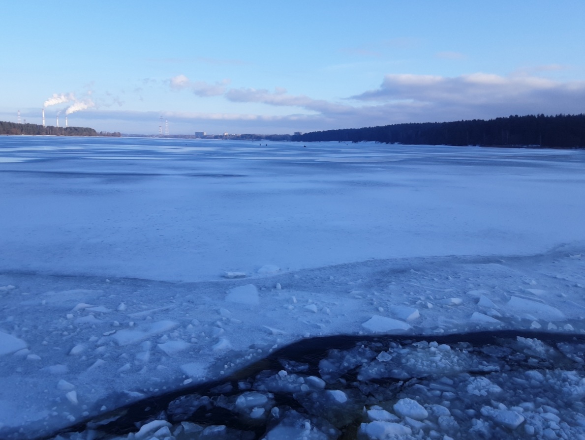 На Волге в районе Конаково толщина льда до 10 см. Но есть места, где всего 3 см. 7 см нужно, чтобы вес человека выдержать. Из-за оттепелей лед рыхловат. А они сидят! И много их. Сидят рыбаки, обмотавшись 20-ти метровым шнуром. На всякий случай и для тепла.