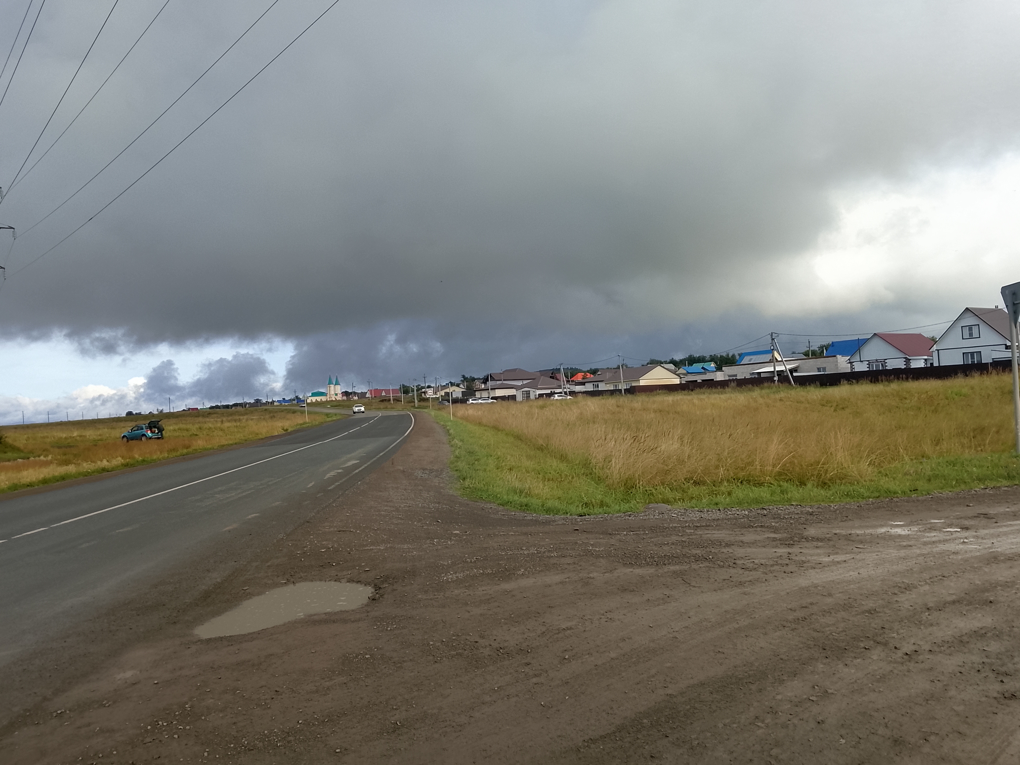 До конца лета 15 дней, но погода вполне осенняя. Практически ежедневно дожди разной силы и продолжительности. Самая верная примета: видно несколько слоёв облаков одновременно - к погодной чехарде. Фоткал на днях на остановке, когда ехал на работу.