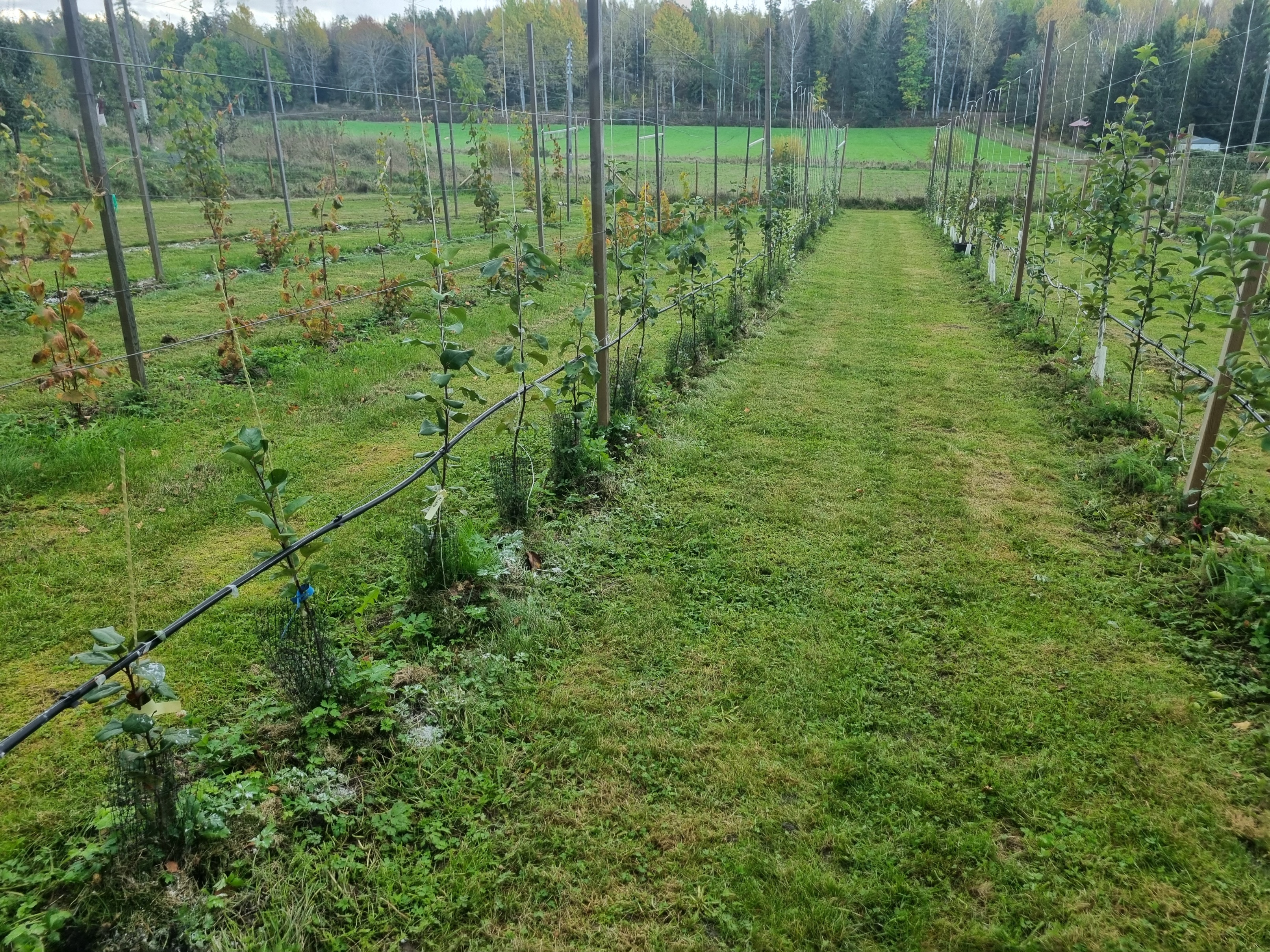 Дано - школка с молодыми саженцами яблоня, груша, черешня, разного рода подвои, на которые прут сорняки (пырей, горец, одуванчик, хвощ, калистегия).