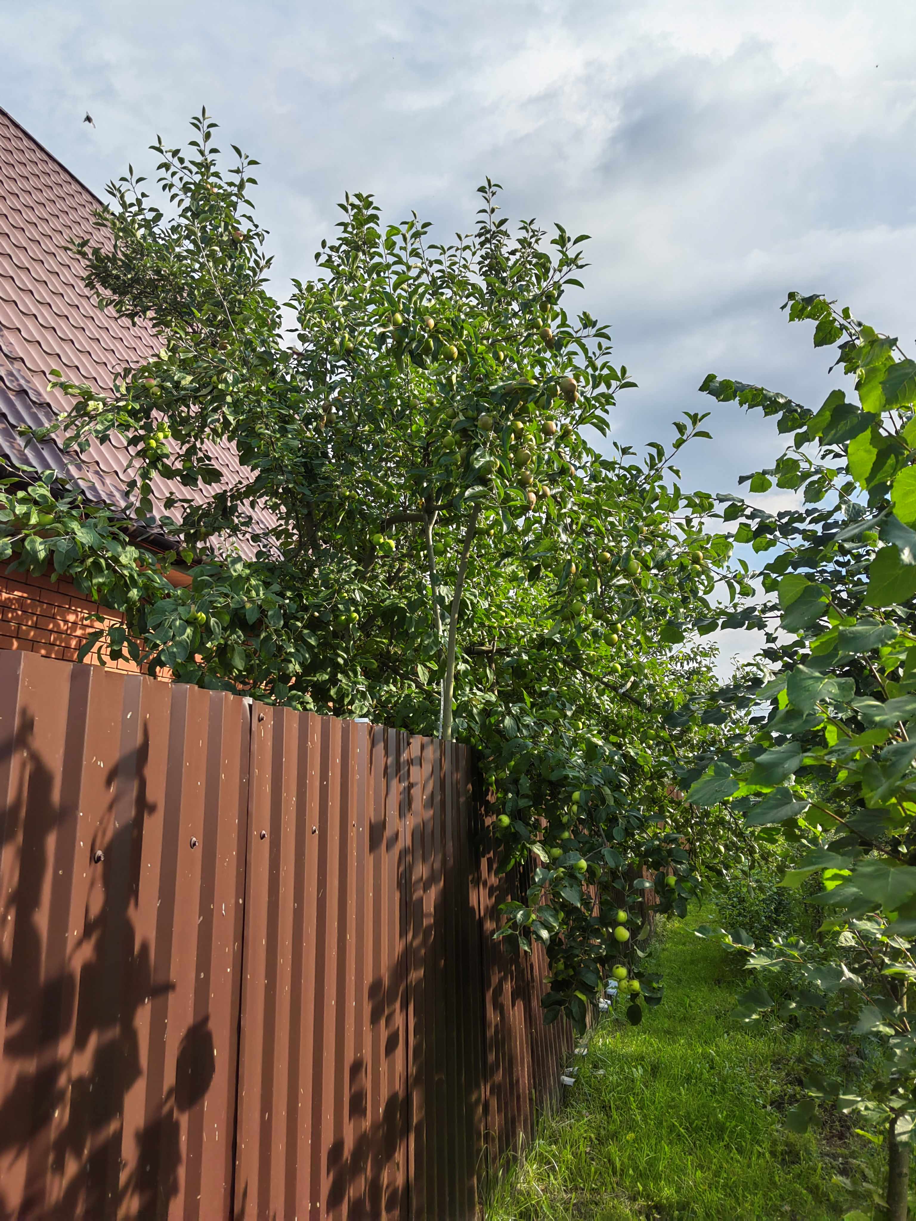 А как ухаживаете за яблоней, посаженной в 50 см от глухого забора? Была бы рабица- ну ещё туда-сюда. И половина дерева всегда в тени.