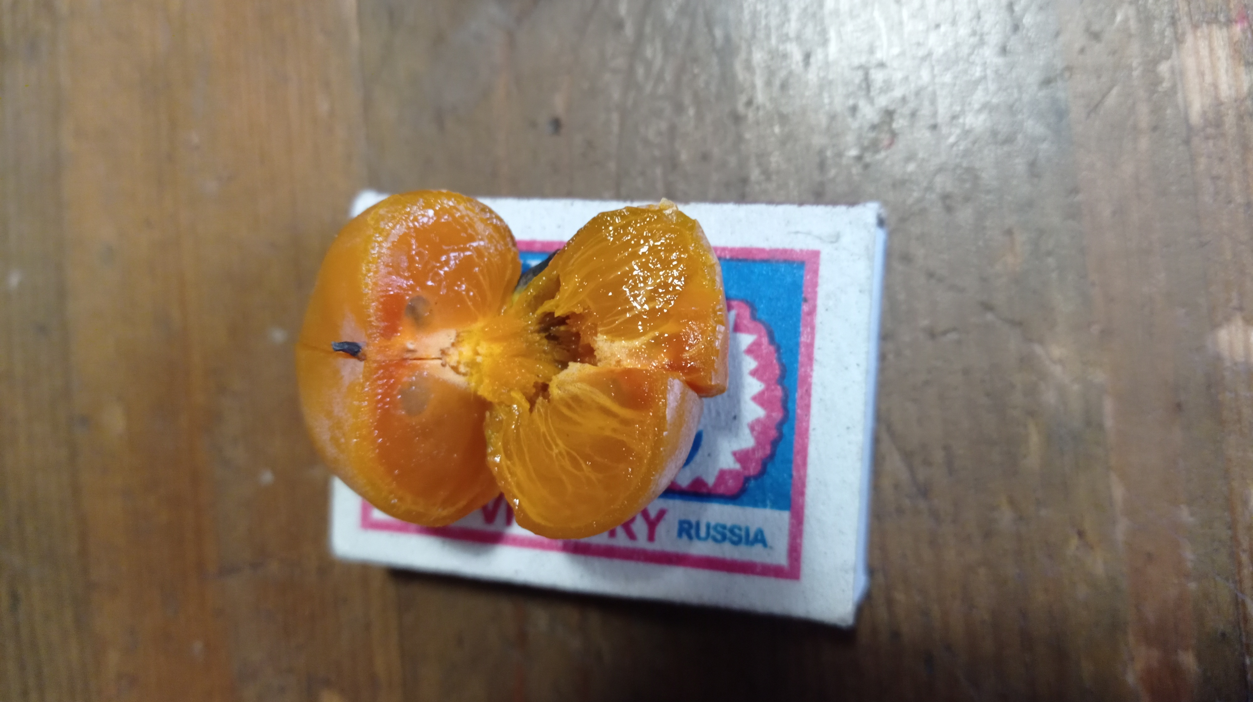 Сорвал свою первую хурму. Поторопился на два-три дня, вяжет. Но вкус обычной хурмы, никакого неприятного или вообще какого-либо привкуса не почувствовал. Мелкая, но это сигнальное плодоношение