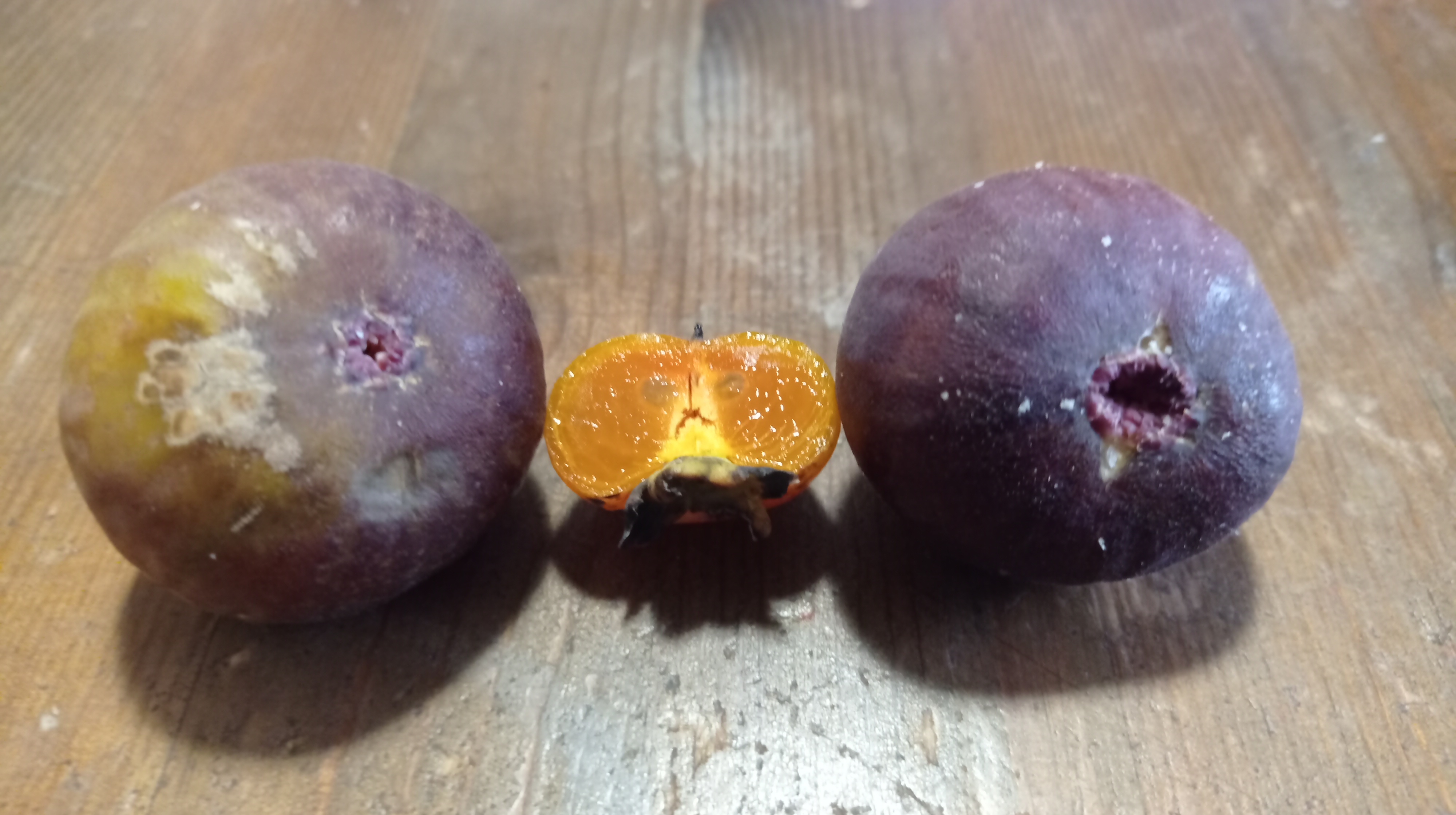 На восточной хурме Хиакуме и гибриде Гора Говерла уже отдельные съедобные хурмины попадаются. Как правило, на Хиакуме это или хорошо опылённые "корольки" (давнее фото), или ягоды, имеющие повреждения. На гибриде ГГ - это ранее повреждённые плоды. Можно специально ускорить созревание хурмы, потыкав, например, зубочисткой.