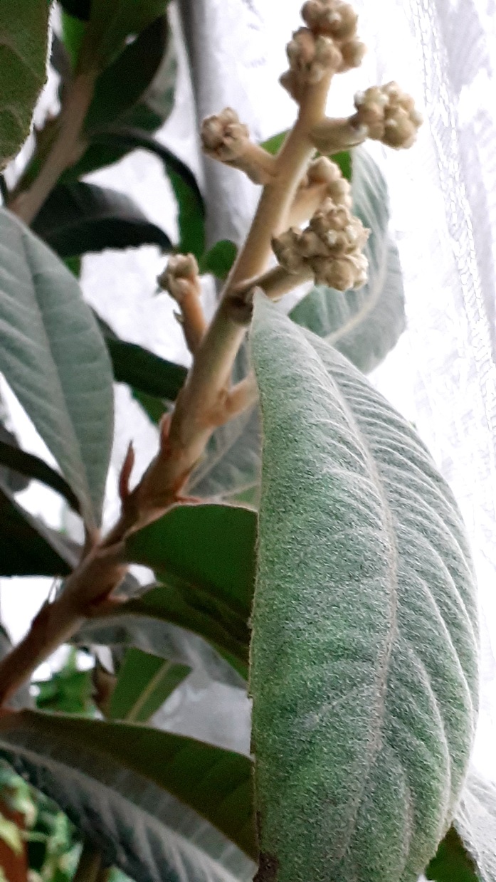 Мушмула японская цветёт с поздней осени всю зиму. Знаю, что в Щёлкино (Керченский п-в Крыма) растёт несколько кустов в каком-то частном пансионате, вроде.Такую всё никак не получается посадить... А на фото мушмула германская формирует соцветия. Такой наши морозы нипочём!