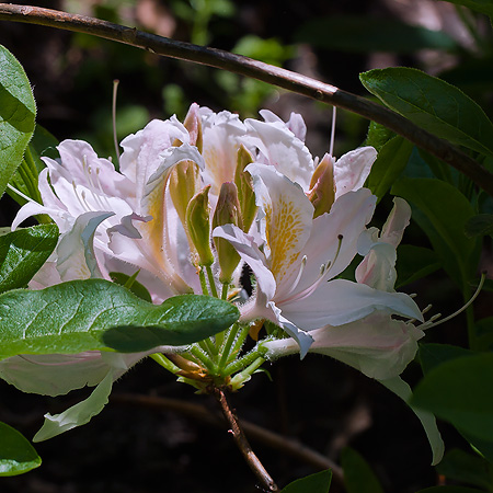Лососевый: Жёлтый: Белый с достаточно сильным и приятным ароматом (покупала как "'Irene Koster", но сомневаюсь, что он): Рододендрон клейкий (первое цветение):