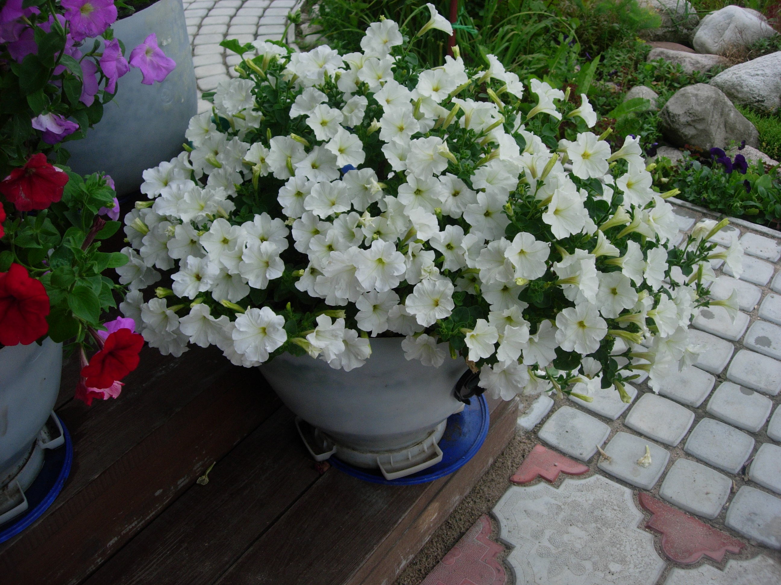 Мои петунии. Белая петуния прекрасно смотрится рядом и с красненькими и с сиреневыми.