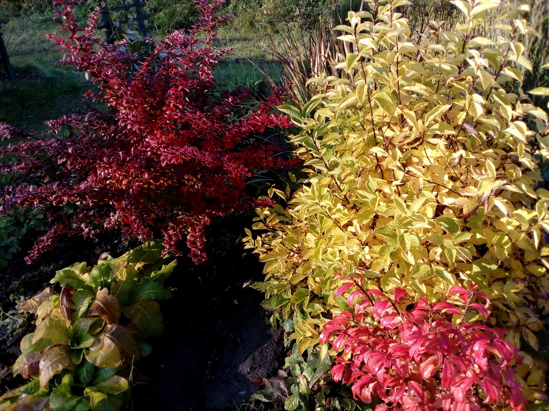 Лен, а как долго он такой нарядный? Я завела для осенней красоты кустик краснолистный... на фоне чубушника Ауреа... (забыла название - ты, Леночка, узнаешь его), так он такой красивый чуть больше недели, а в этом году так и вовсе его не видно было. А весь сезон зелёный, совсем не видный.