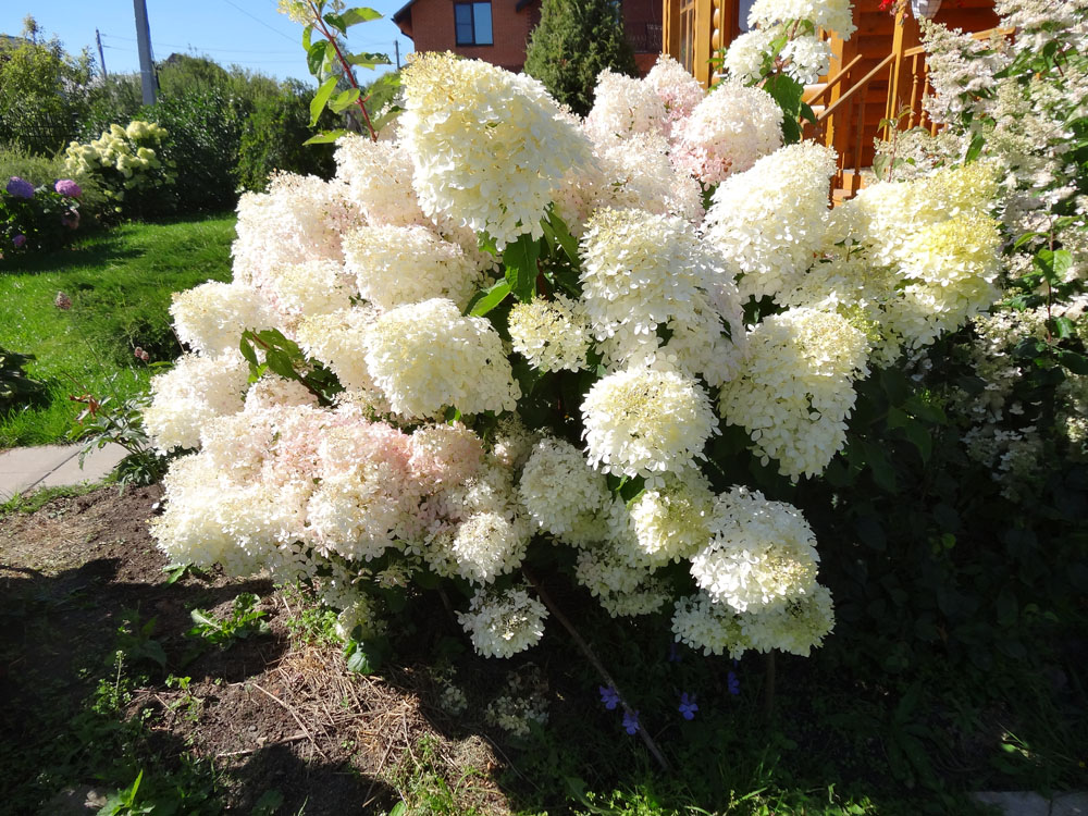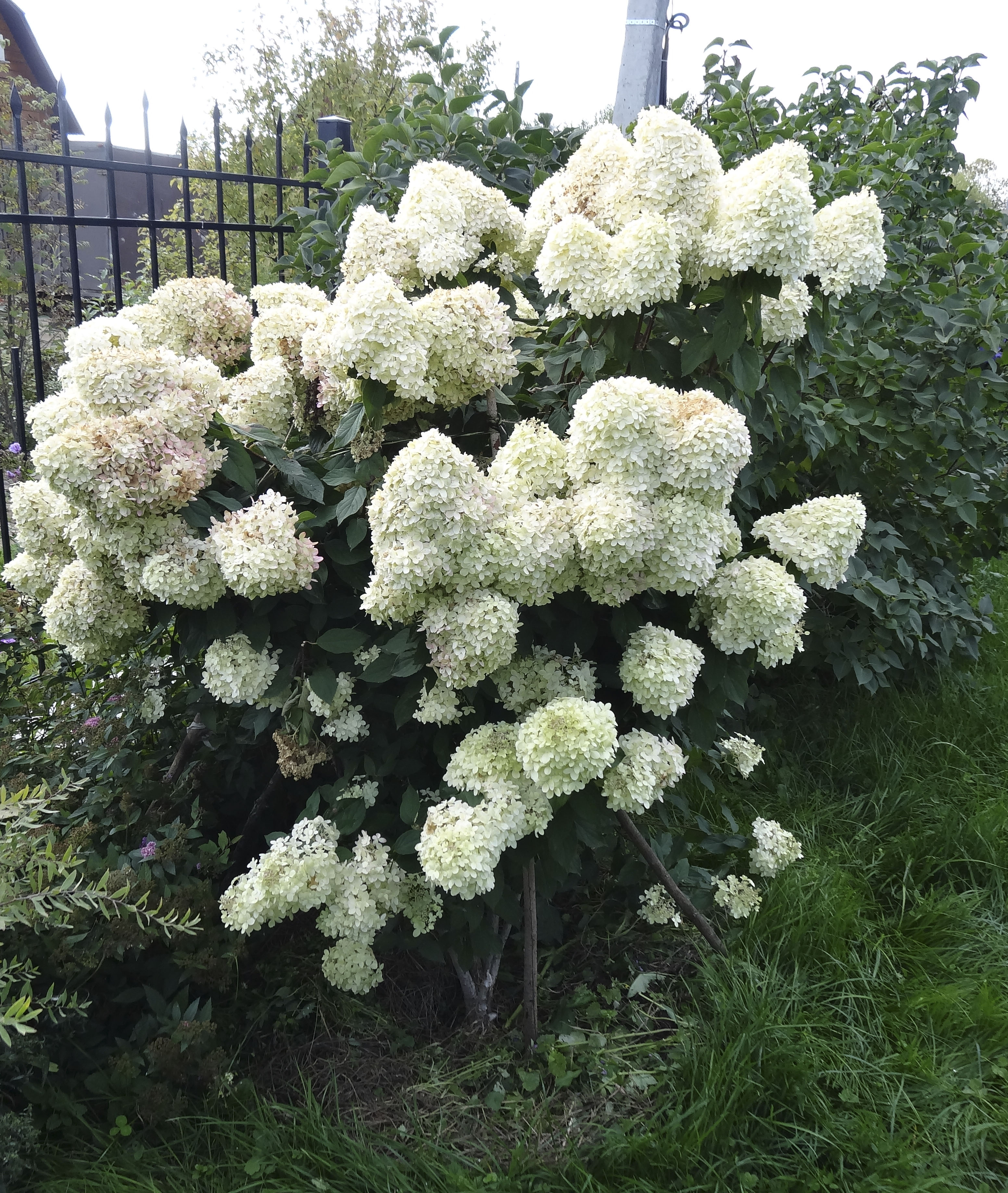 Пишут, что метельчатая гортензия Фантом дорастает до 3-х метров. У меня куст молодой, да и режу я его, 3 метра не хочу. Если разбушуется, придется искать новое место.