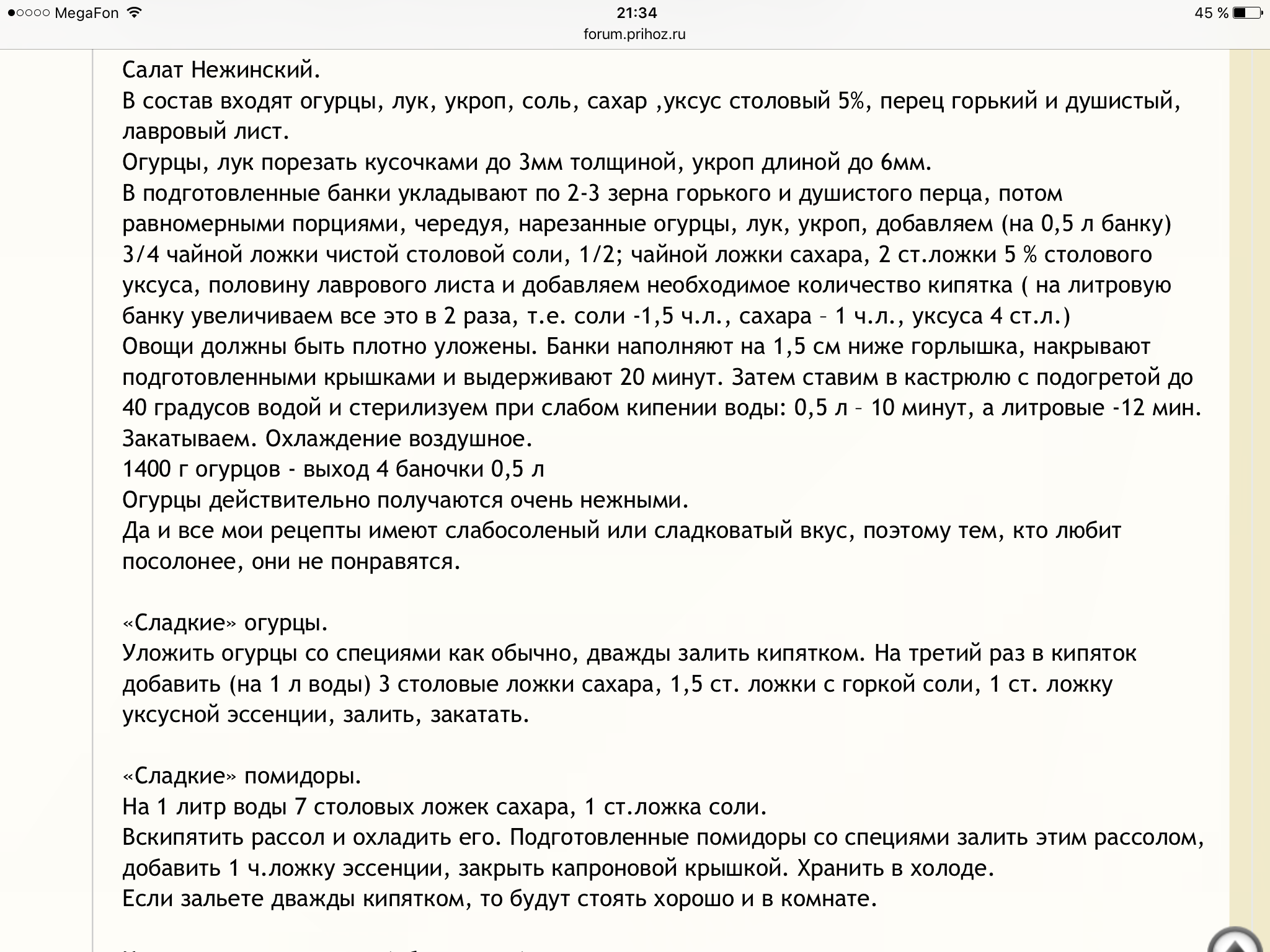 По поводу маринованных огурцов. Может помните, были в трехлитровый банках при СССР? Были вкусные,но там огурцы были огромные. Даю рецепт. Я его перечитывала на 1 л. Вкусные получаются. В банку кроме душистого перца, гвоздики и лаврового листа по рецепту ничего не добавляется. Я пробовала свои любимые специи добавлять, тоже вкусно.