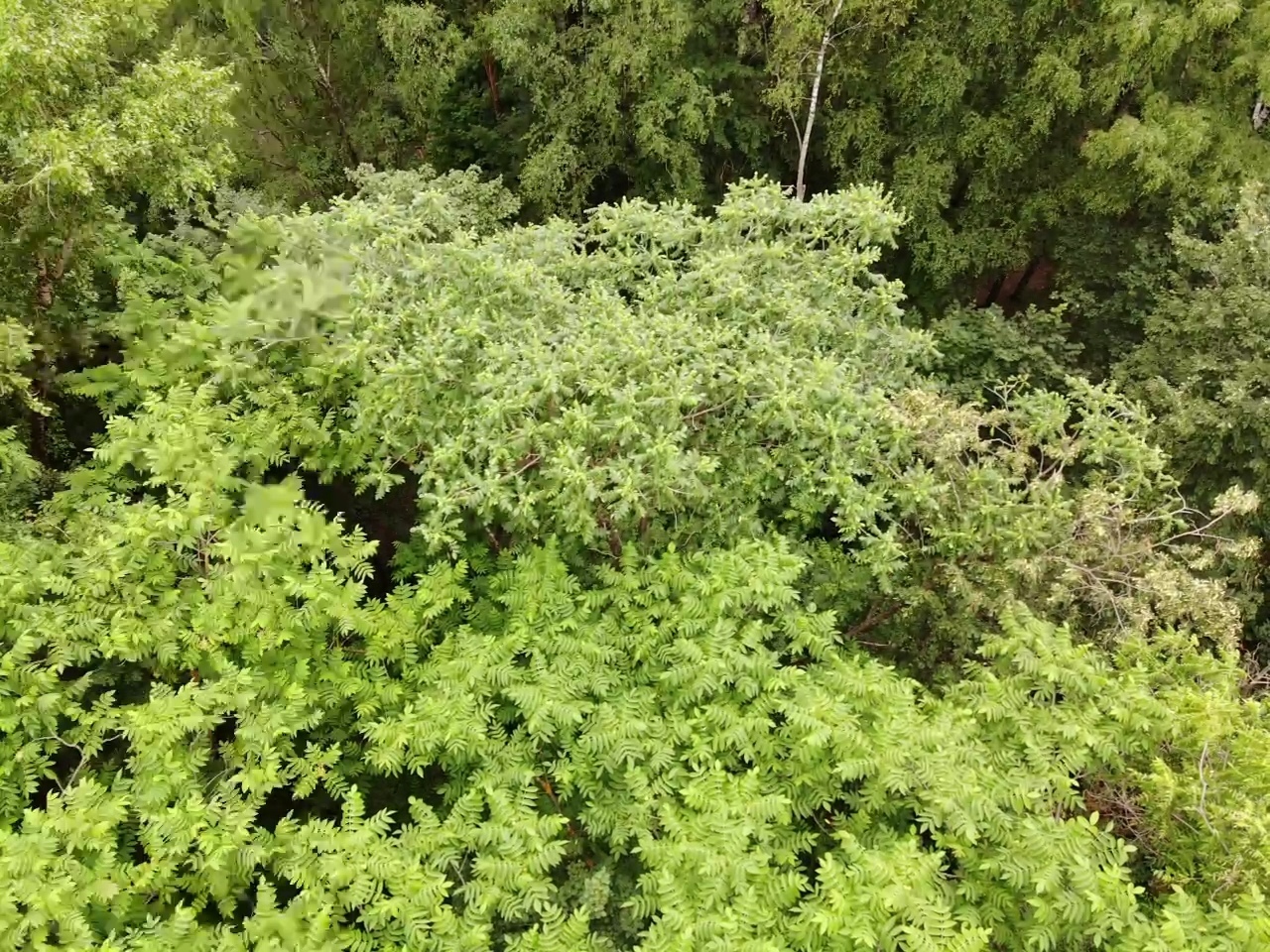 . Материнское дерево растёт рядом с лесопилкой в Подмосковье в группе других деревьев.